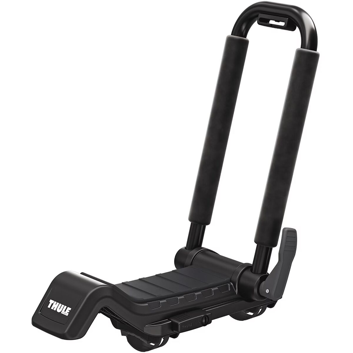 On top of that versatility, the HullAPort XTR is also easy to use. The carriers come fully assembled out of the box, so we can mount them to our crossbars in minutes. For added security, we can lock them to our roof rack with the Thule One Key System (not included). A simple lever locks the carriers into an angled or upright position and releases them to fold flat when not in use, so we can park safely in the garage and avoid annoying road noise on the highway. The integrated StrapCatch keeps our straps in place and speeds up our loading process, and Thule thoughtfully included the load straps, bow line, and stern line that we need to transport one kayak safely on our sweet new rack.