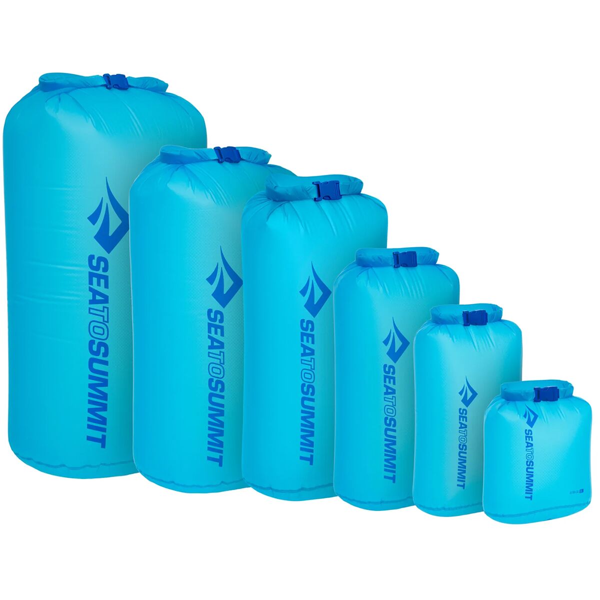 Lightweight and waterproof, the Sea to Summit Ultra-Sil Dry Bags are made to keep our gear dry and organized inside a backpack or travel duffel. The translucent fabric lets us see the contents easily while the roll-top closure compresses our belongings and protects them with a watertight seal. These bags are not submersible and not intended for paddling and watersports. However, their 2K waterproof rating and seam-sealed construction keep our clothes, sleeping bags, electronics, and other gear dry when we´re out backpacking, bikepacking, or traveling.