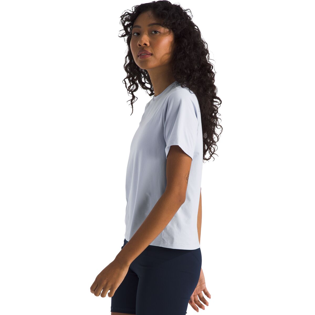 The lightweight, breathable blend of recycled polyester and elastane moves with us, offering just the right amount of stretch for unrestricted movement. A classic fit and set-in sleeves make this a versatile staple for workouts, hikes, and casual outings alike.