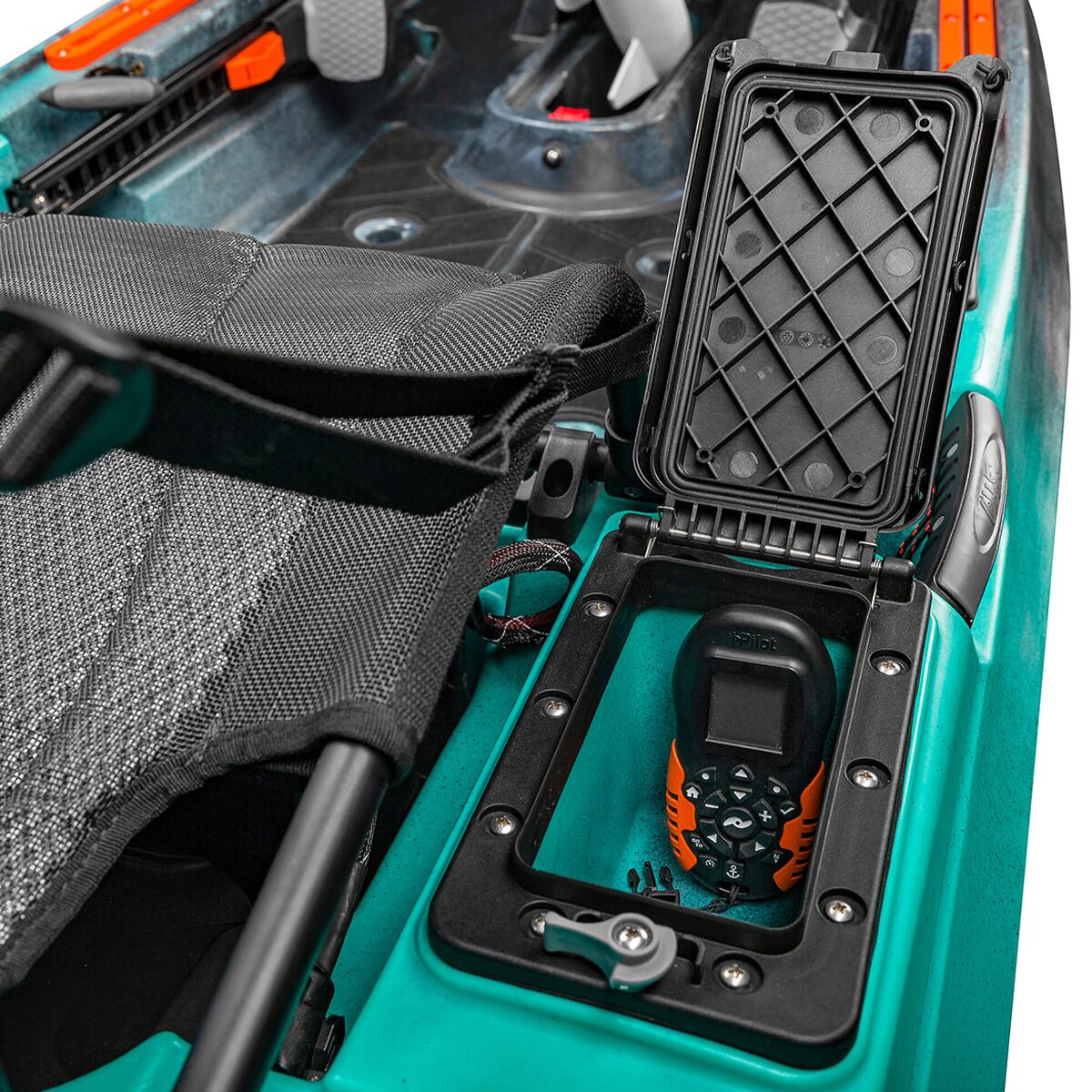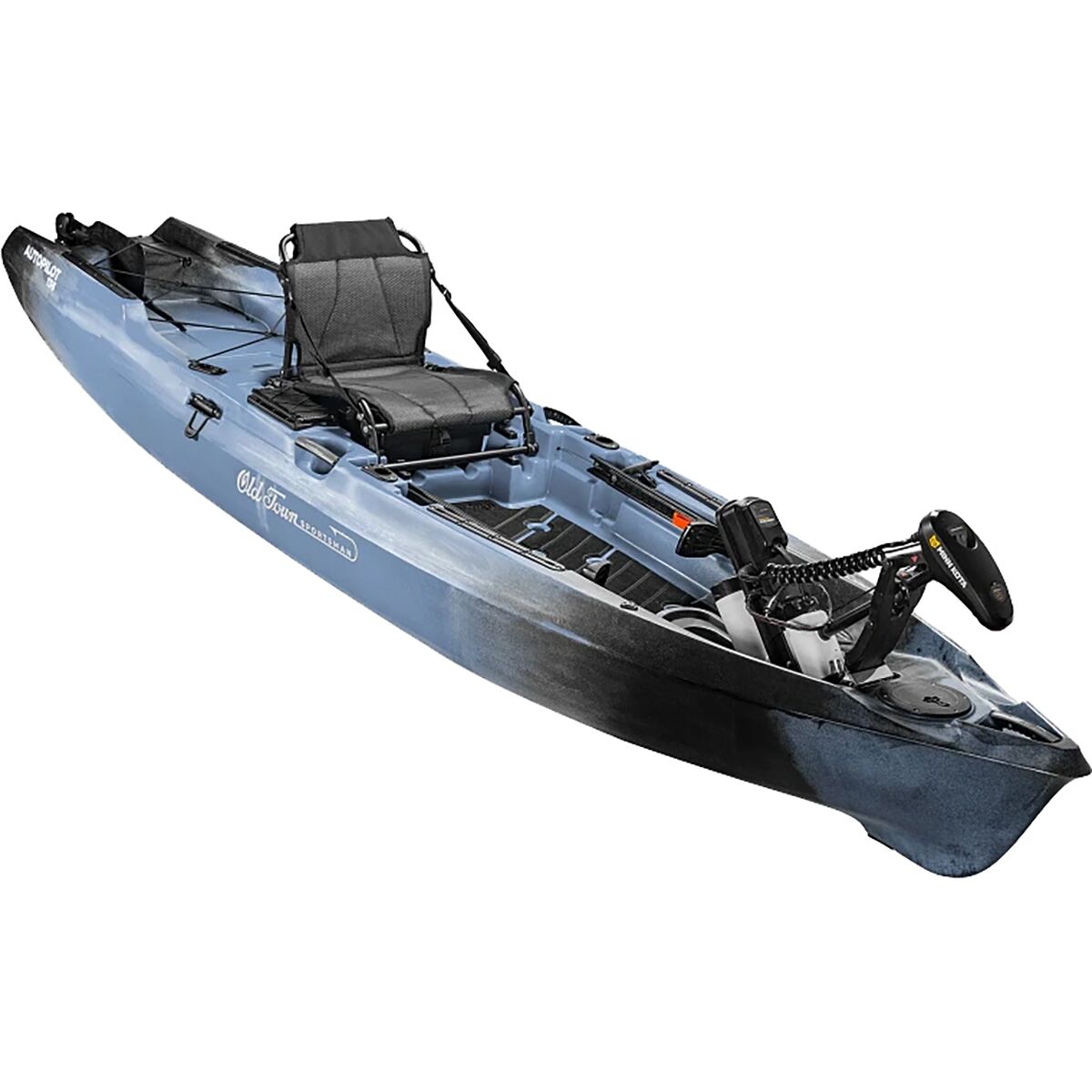 Old Town not only motorized the Sportsman Autopilot 136 Kayak, but also equipped it with a Bluetooth-connected remote that provides hands-free navigation so we can cast more and paddle less. The remote features Autopilot navigation that adjusts the motor´s speed and direction displayed on a sun-friendly screen, and Spot-Lock technology keeps the kayak in place when we´ve reached our destination.