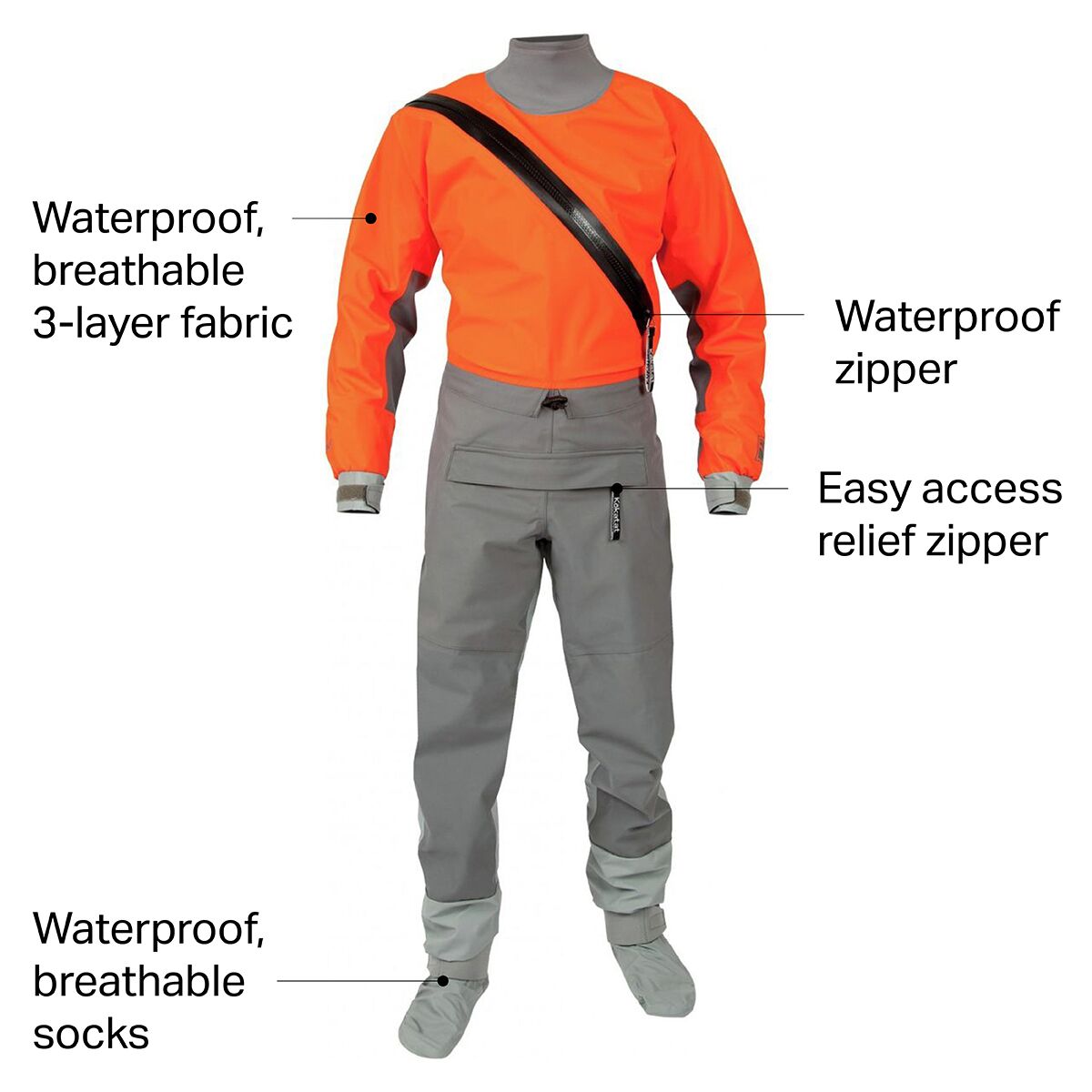 • Front zipper entry makes it easy to get in and out of suit