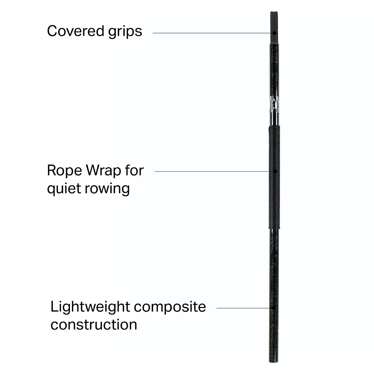 - Shaft comes with rope wrap for quiet rowing