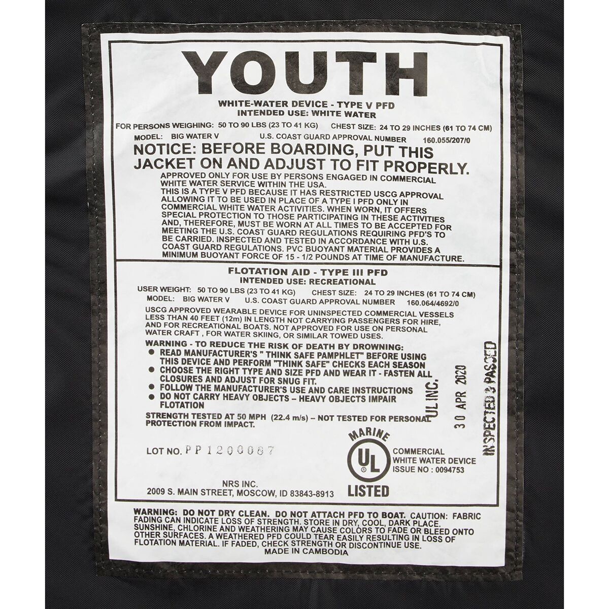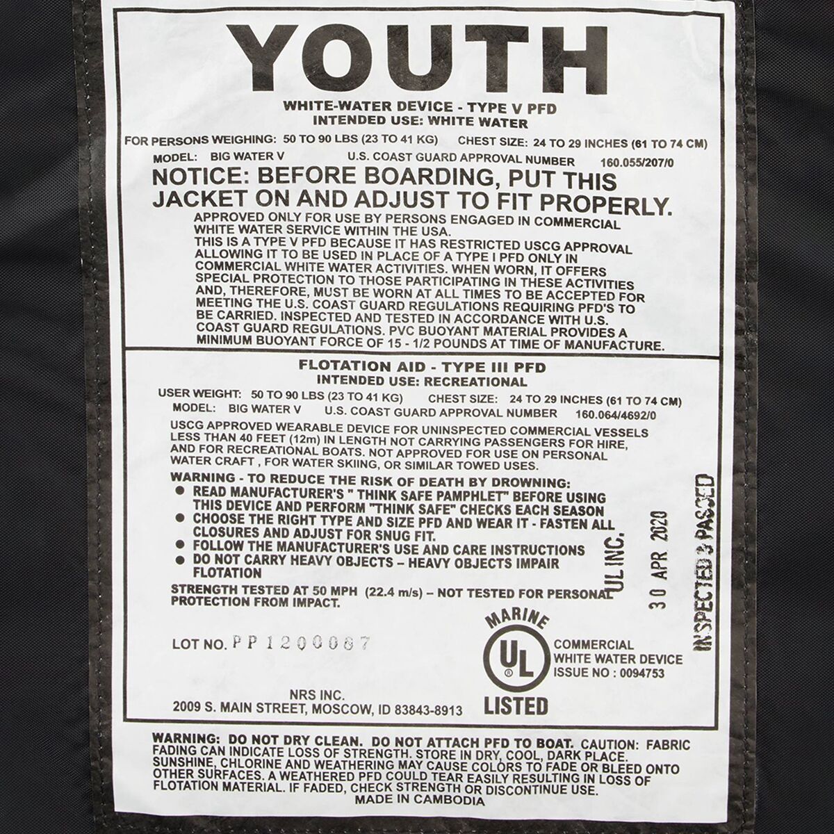 Big Water V Youth Personal Flotation Device