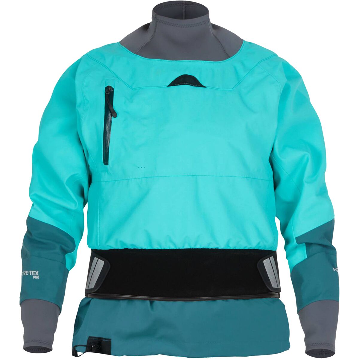 We´re never worried about being wet in the white water while wearing the Rev Dry Top from NRS. This motion-friendly top uses a well-shaped silhouette to ensure our paddling efficiency is top-notch while GORE-TEX Pro fabric stops water dead in its tracks. Reinforced and perforated gaskets stop any moisture from seeping in by sealing it out and draining anything that might slip by.
