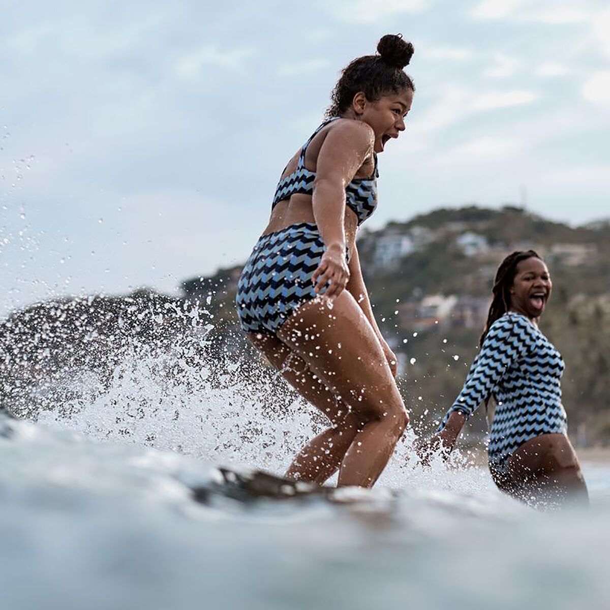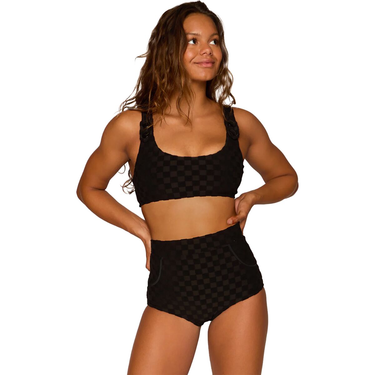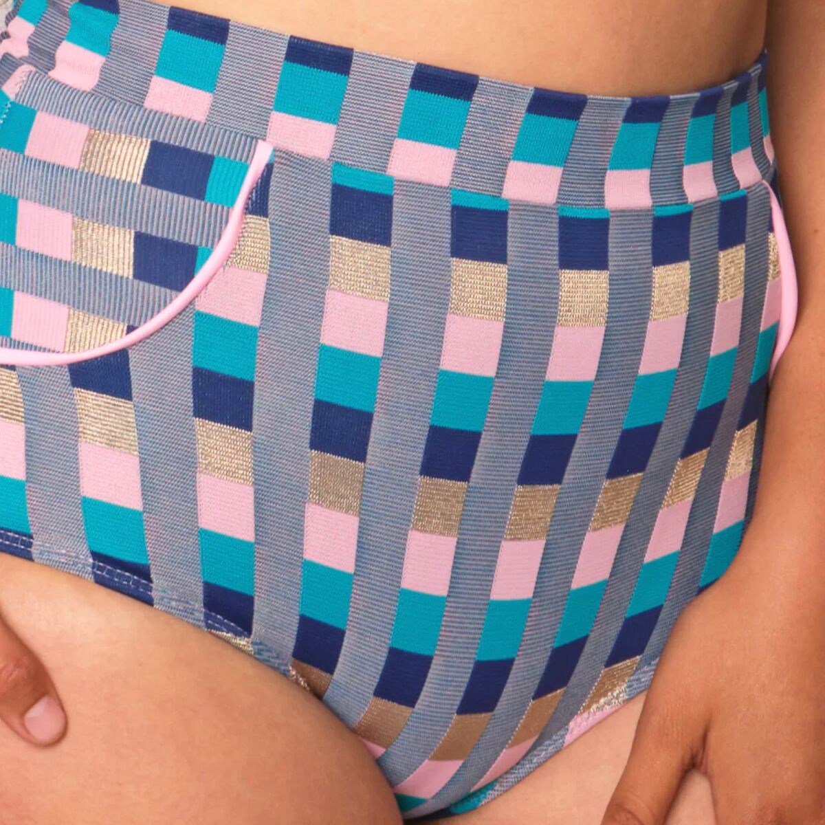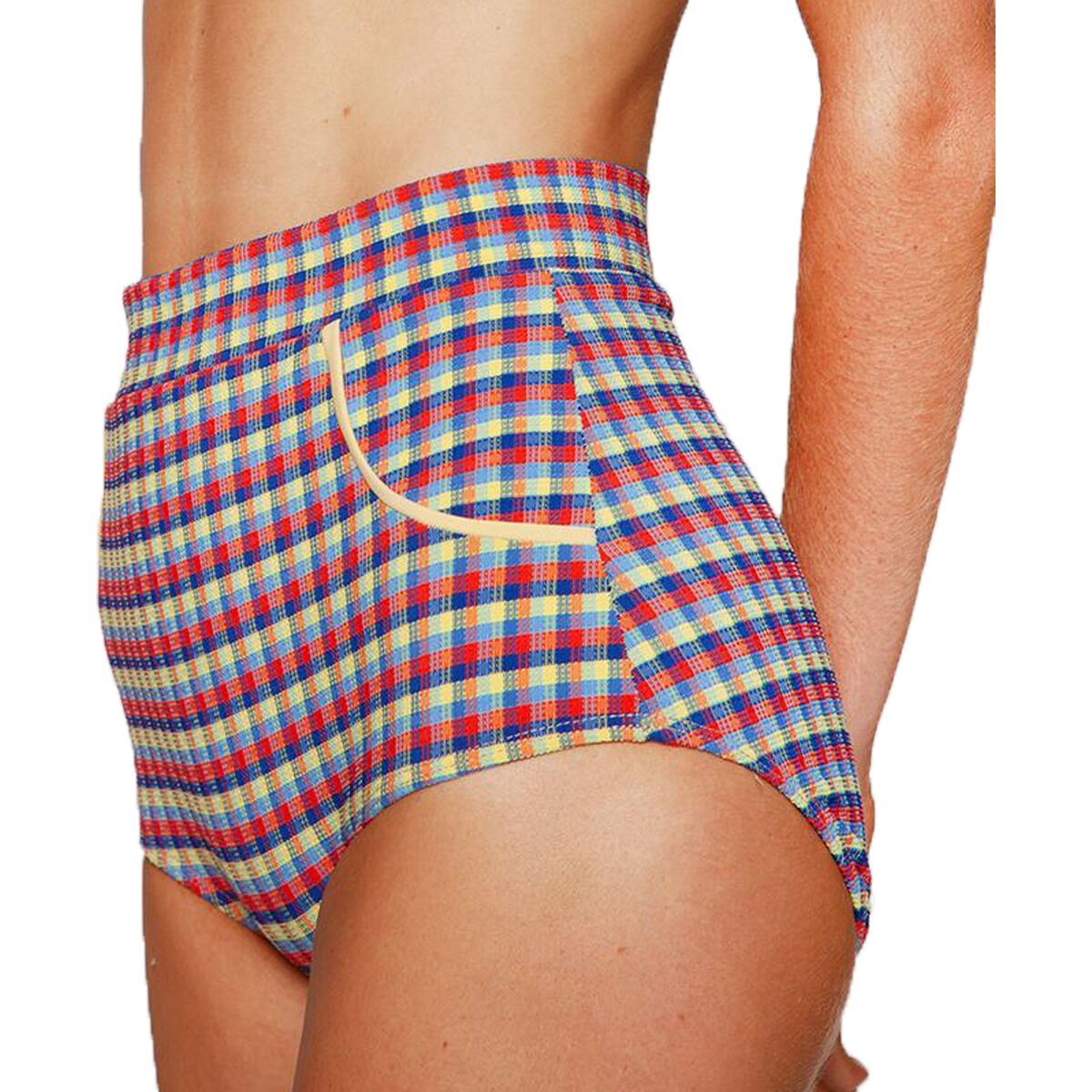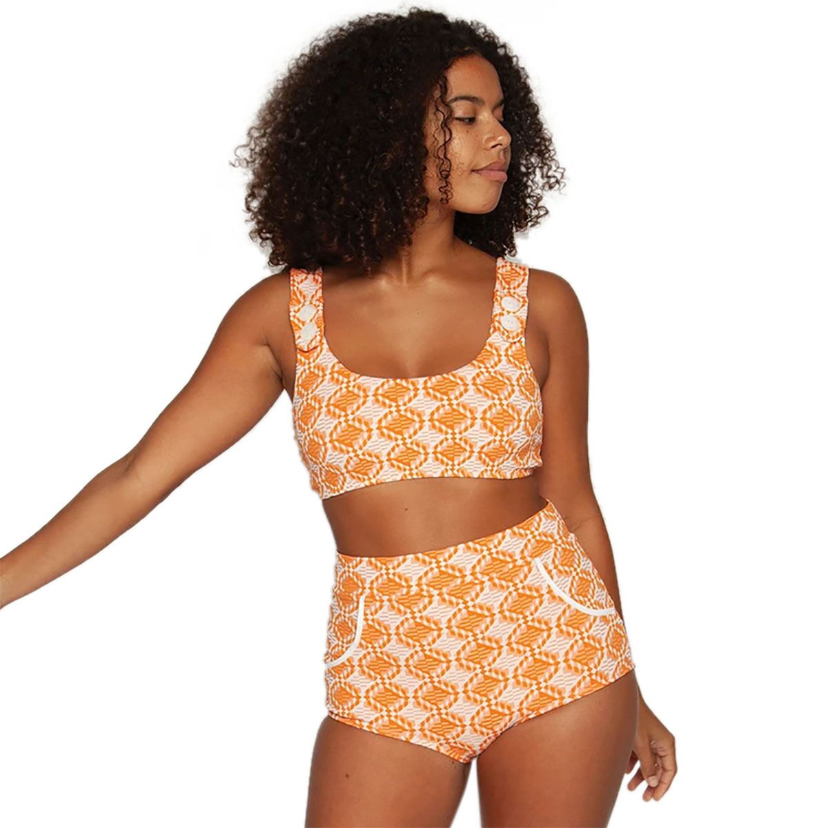 - Retro high-waisted bikini bottom built for confident surf sessions