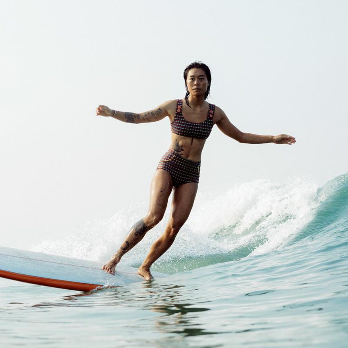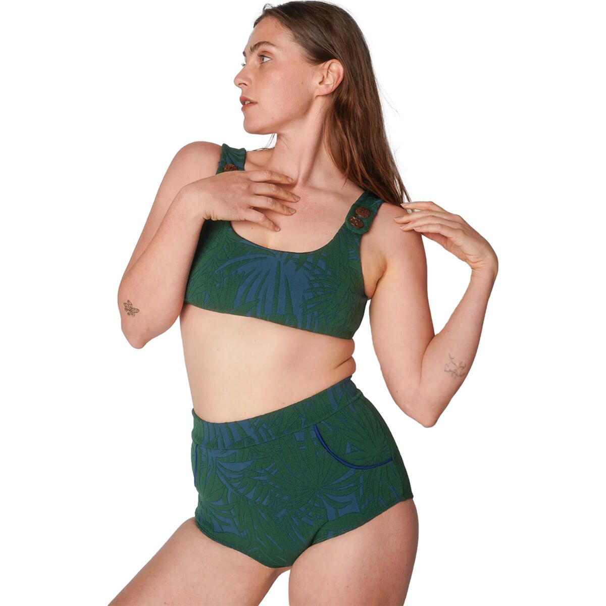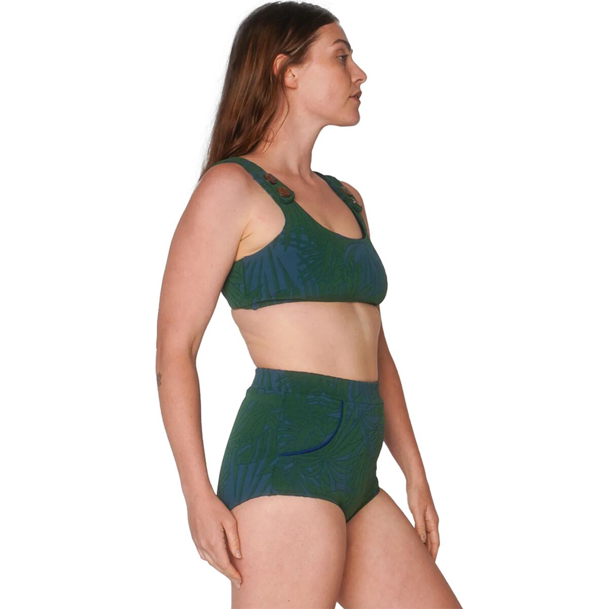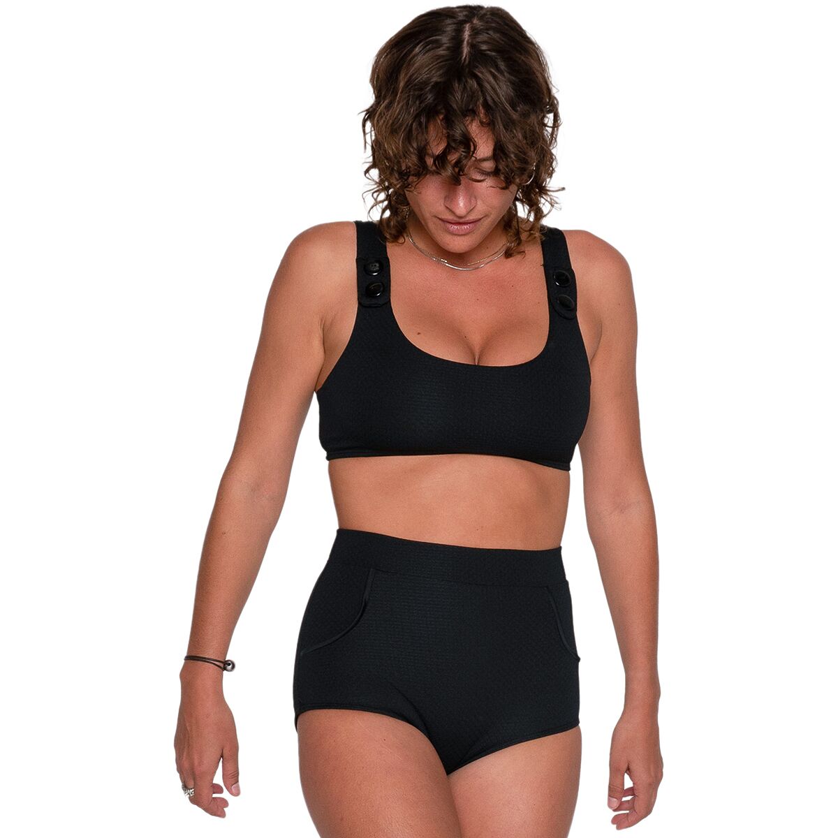 Seea’s recycled nylon-blend fabric brings soft stretch and reliable resilience to our swim kit, and the high-rise cut pairs perfectly with rashguards, surf tops, or bikini bras. The modest rear coverage means we can move freely without adjustments, giving us the freedom to focus on the moment—not our swimwear.