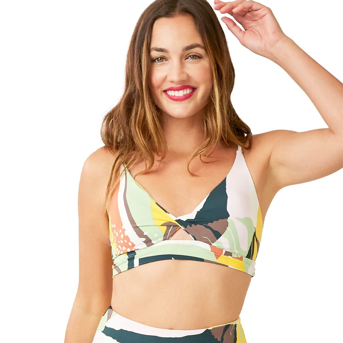 This bralette-style bikini top provides us with an effortless fit and a unique twist—literally. Its lightweight build and fun design feel at home on the beachside or paired with jean shorts in town.