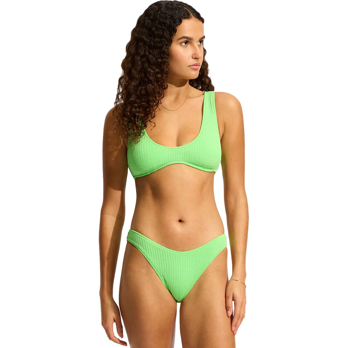 Removable cups provide shape and support, giving us the freedom to wear it our way. Crafted from a soft, stretchy nylon blend, it hugs the body while maintaining a lightweight feel. Pair it with matching bikini bottoms or mix and match for a personalized beach-day look.