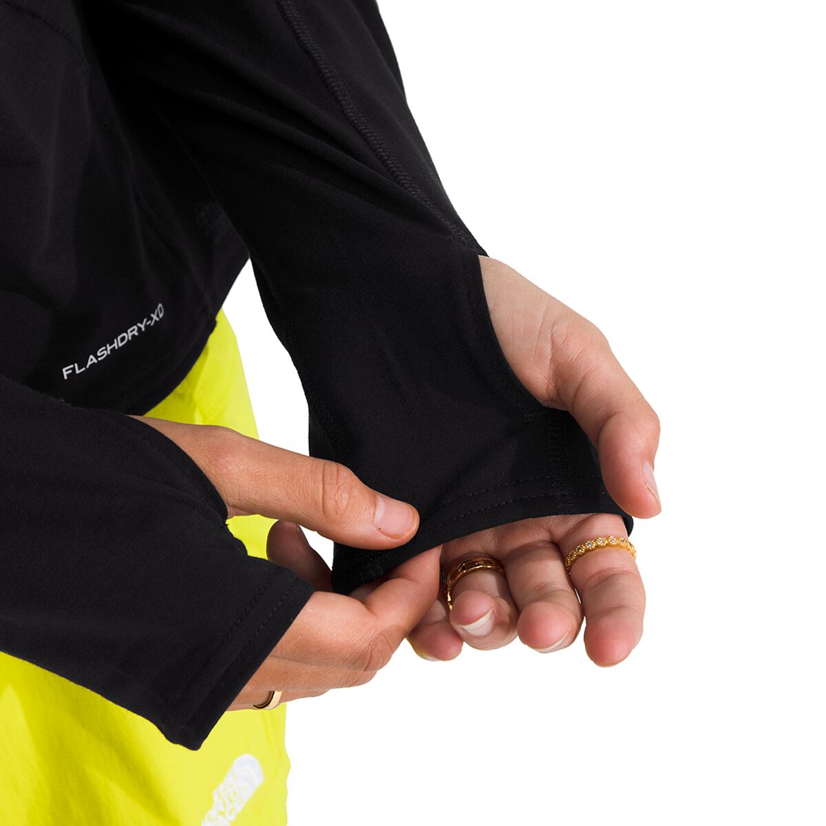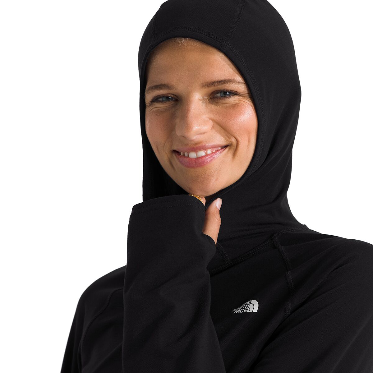 - Convenient thumbholes created by top-panel sleeve openings