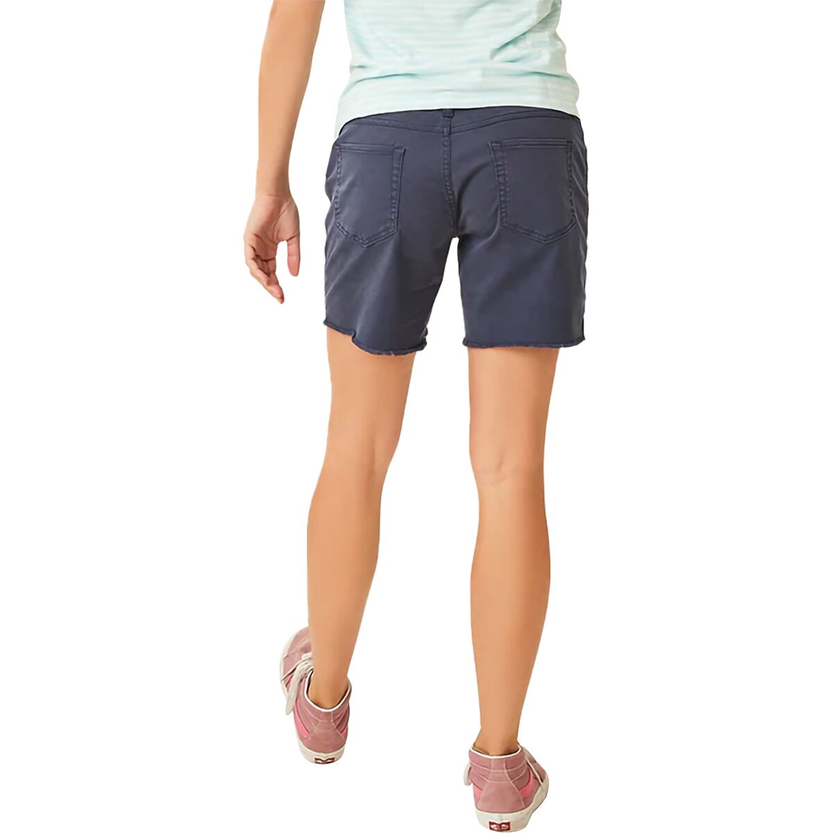 - Frayed hem adds a casual, laid-back touch