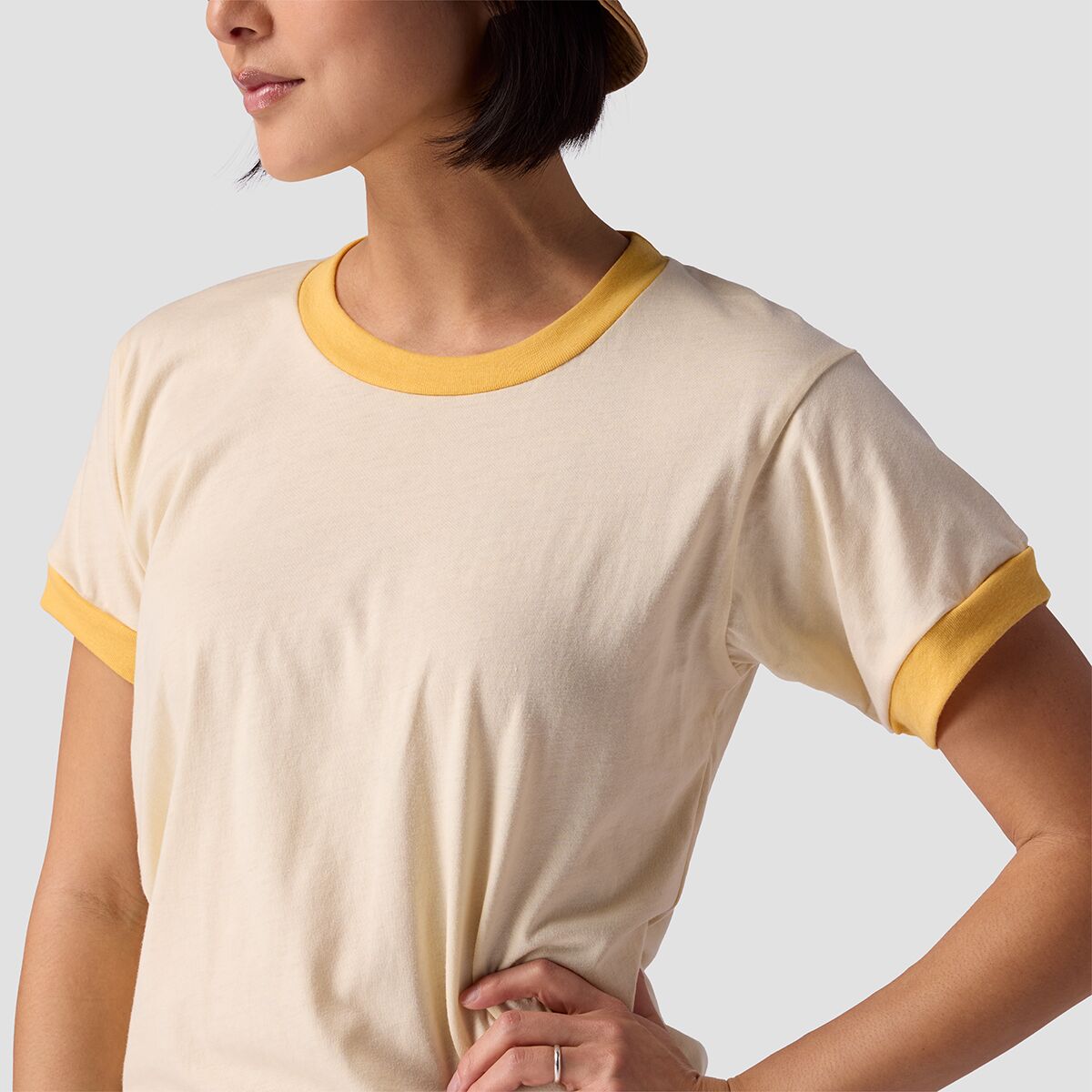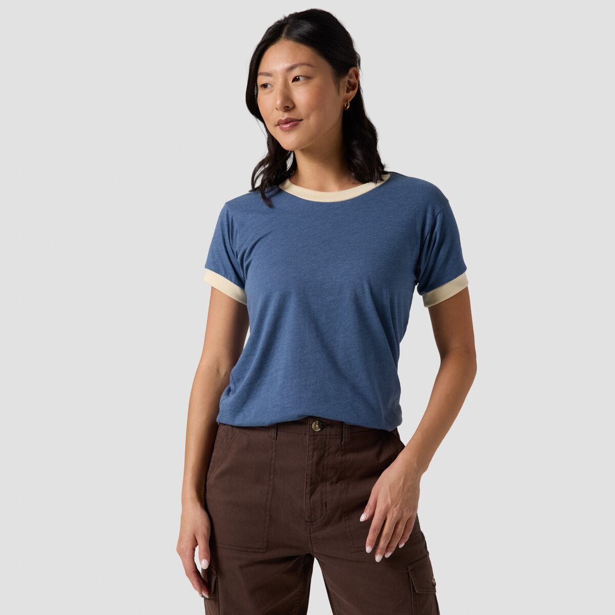 "This tee is a go-to for everyday comfort. The soft fabric feels great on the skin, and the classic ringer style adds just the right amount of retro vibe. I’ve worn it hiking and lounging around, and it always looks and feels great."