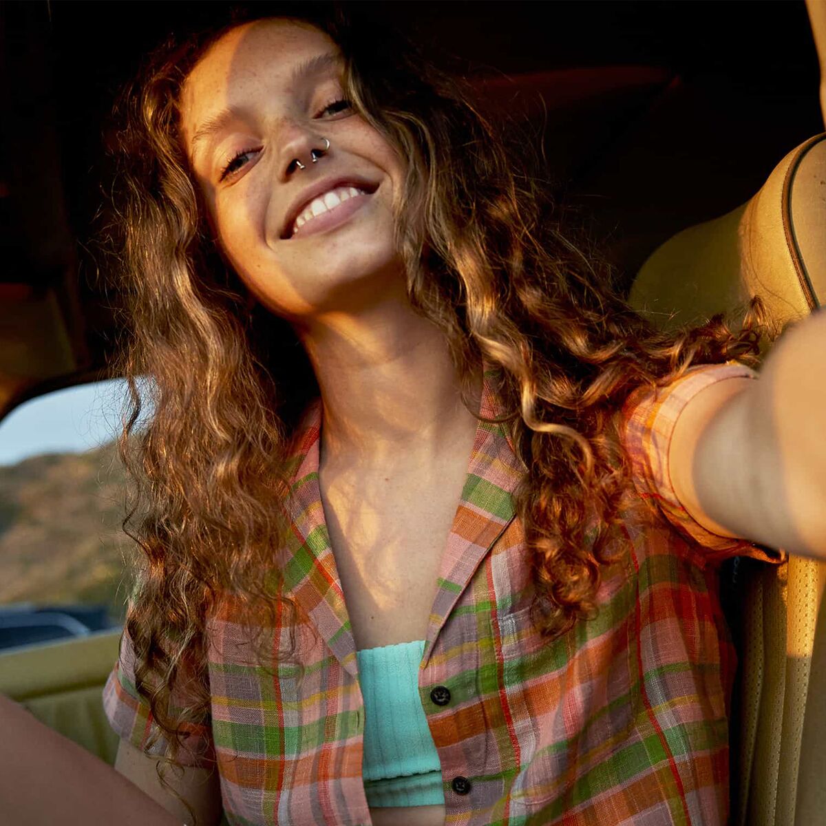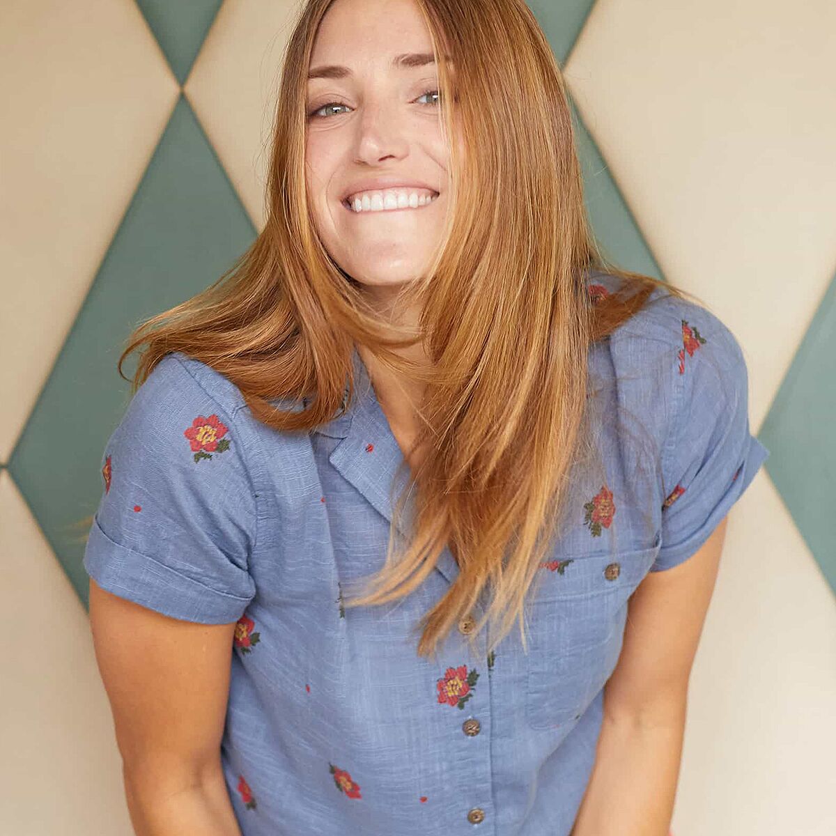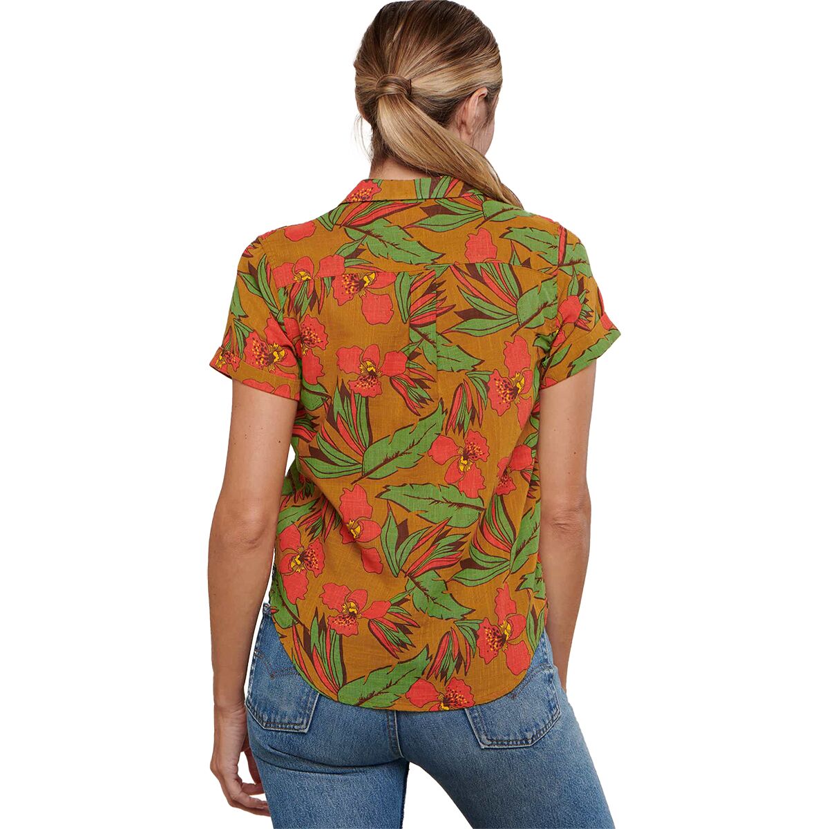 • Flowy button-up top for camp and casual wear