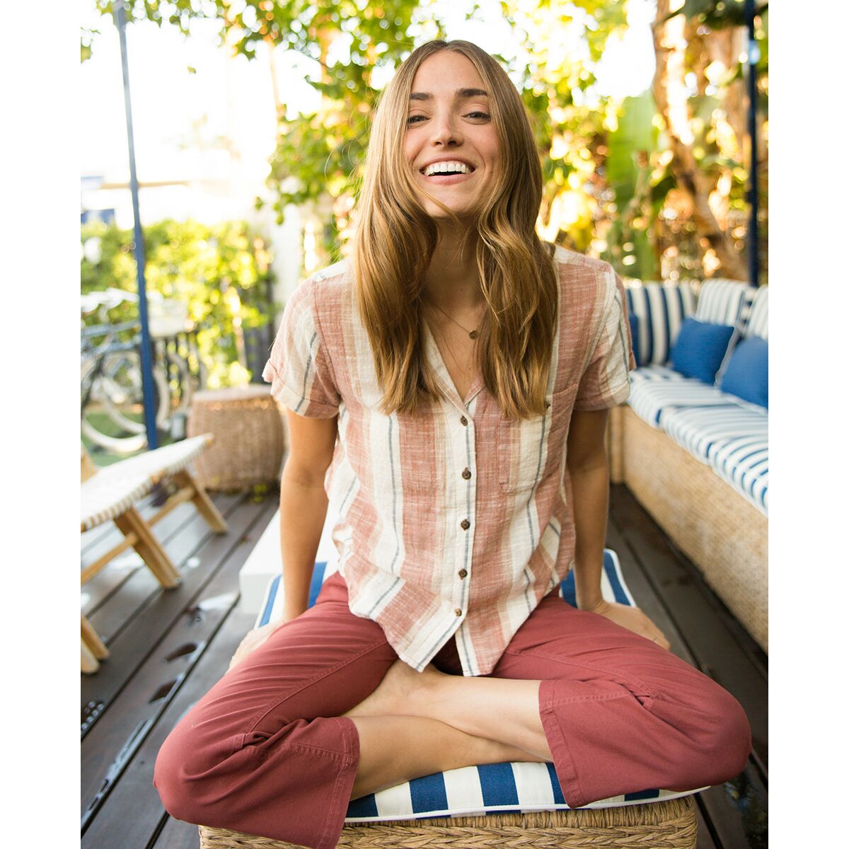 For summer fun from farmers´ markets to fireside kickbacks, we wear this breezy button-up for ultimate comfort. This top features stylish prints that bring a smile to our face, an open knit that keeps us cool on the hottest days, and a casual cut with a vintage-inspired camp collar.