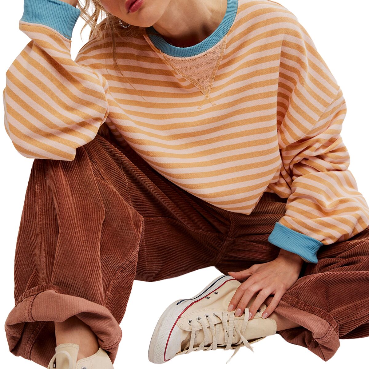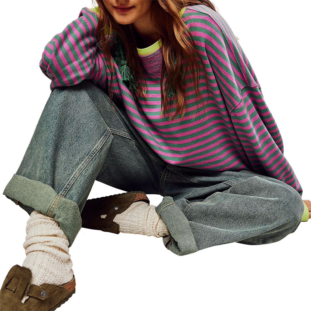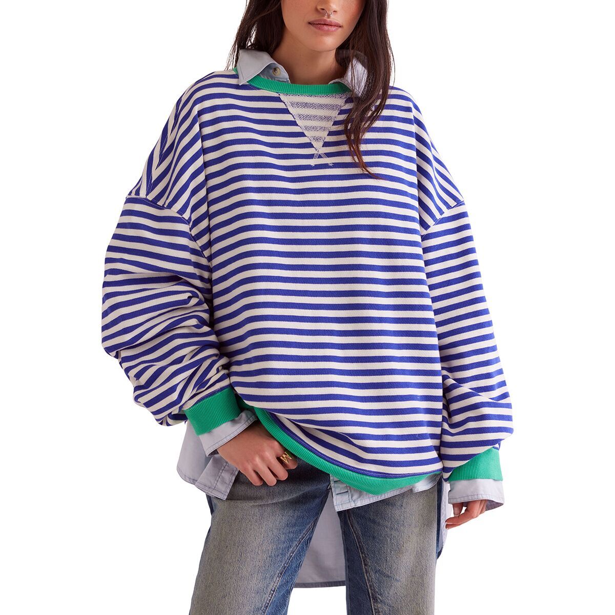 The Free People Classic Striped Crew has effortless style and an oversized fit that lets us slip in and enjoy its combination of cool and comfortable.