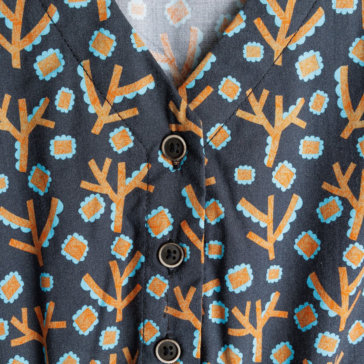 - [body] 55% organic cotton, 45% TENCEL, [buttons] 25% recycled polyester faux wood