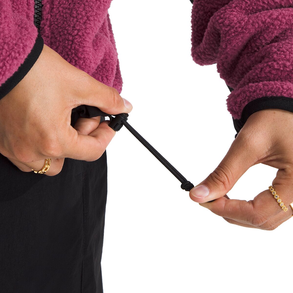 • Elastic cuffs and drawcord hem give us the perfect fit