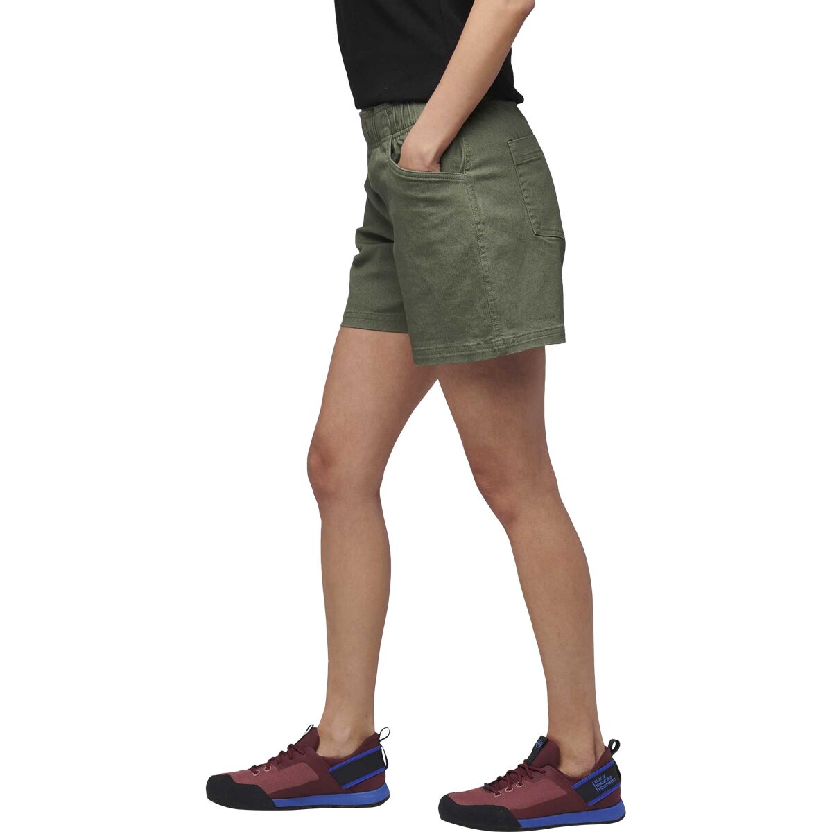 We love the wide elastic waistband and drawcord for a dialed-in fit, and the mix of available fabrics—stretch twill or corduroy—lets us choose our vibe. With roomy drop-in pockets and a mid-rise fit that pairs well with harnesses, these are the kind of shorts that move from route to rest day without missing a beat.