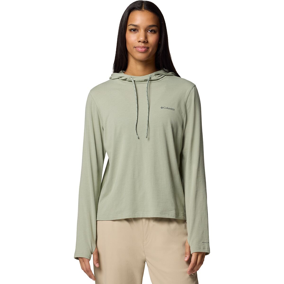 "This hoodie is my go-to for sunny outdoor activities. The UPF 50 protection keeps my skin safe, and the Omni-Wick™ technology is a lifesaver for staying dry during hikes. I also love the thumbholes and adjustable hood for extra coverage."