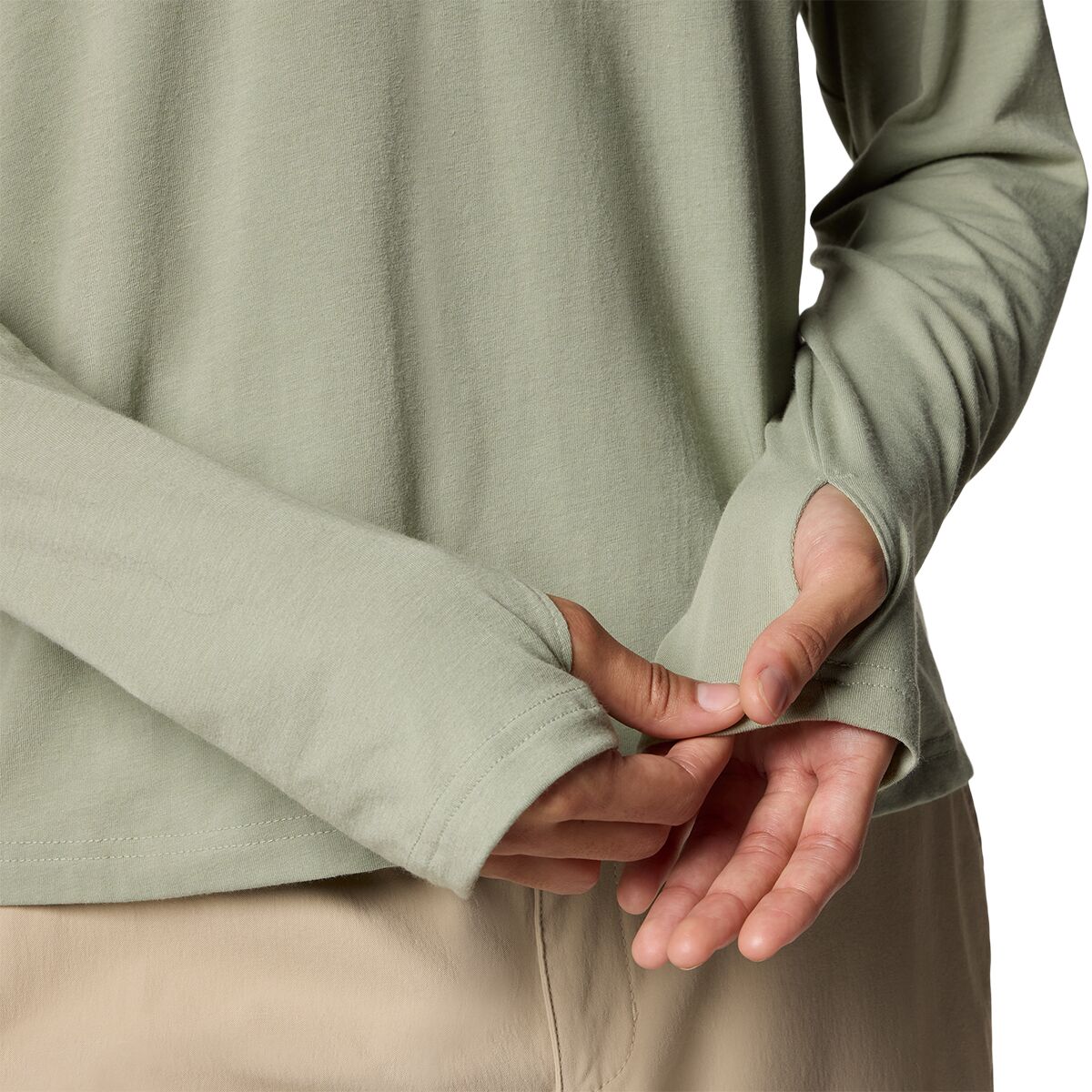 • Thumbholes on cuffs keep sleeves in place and offer extra coverage