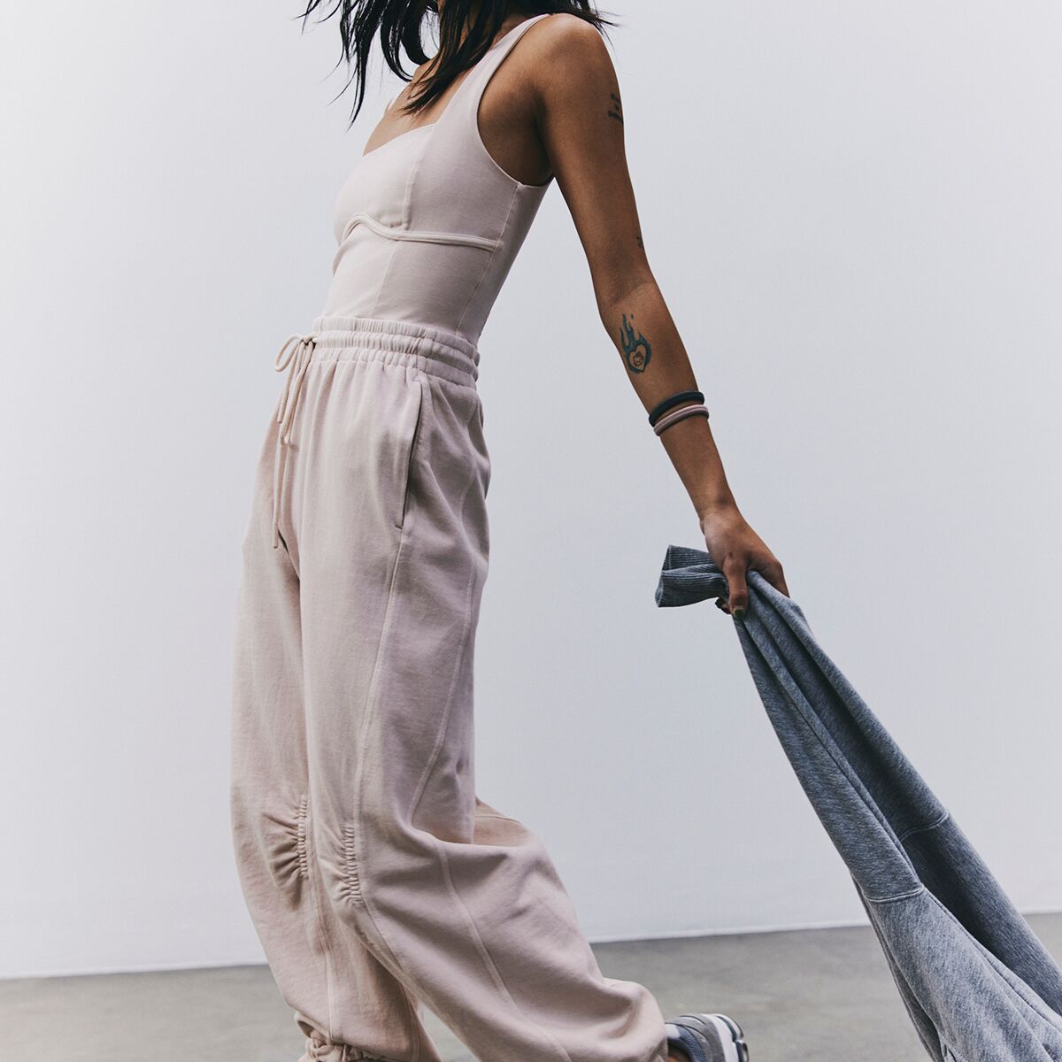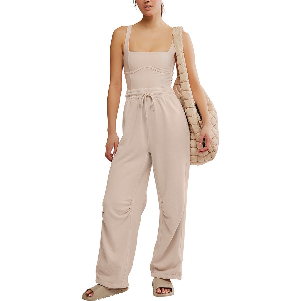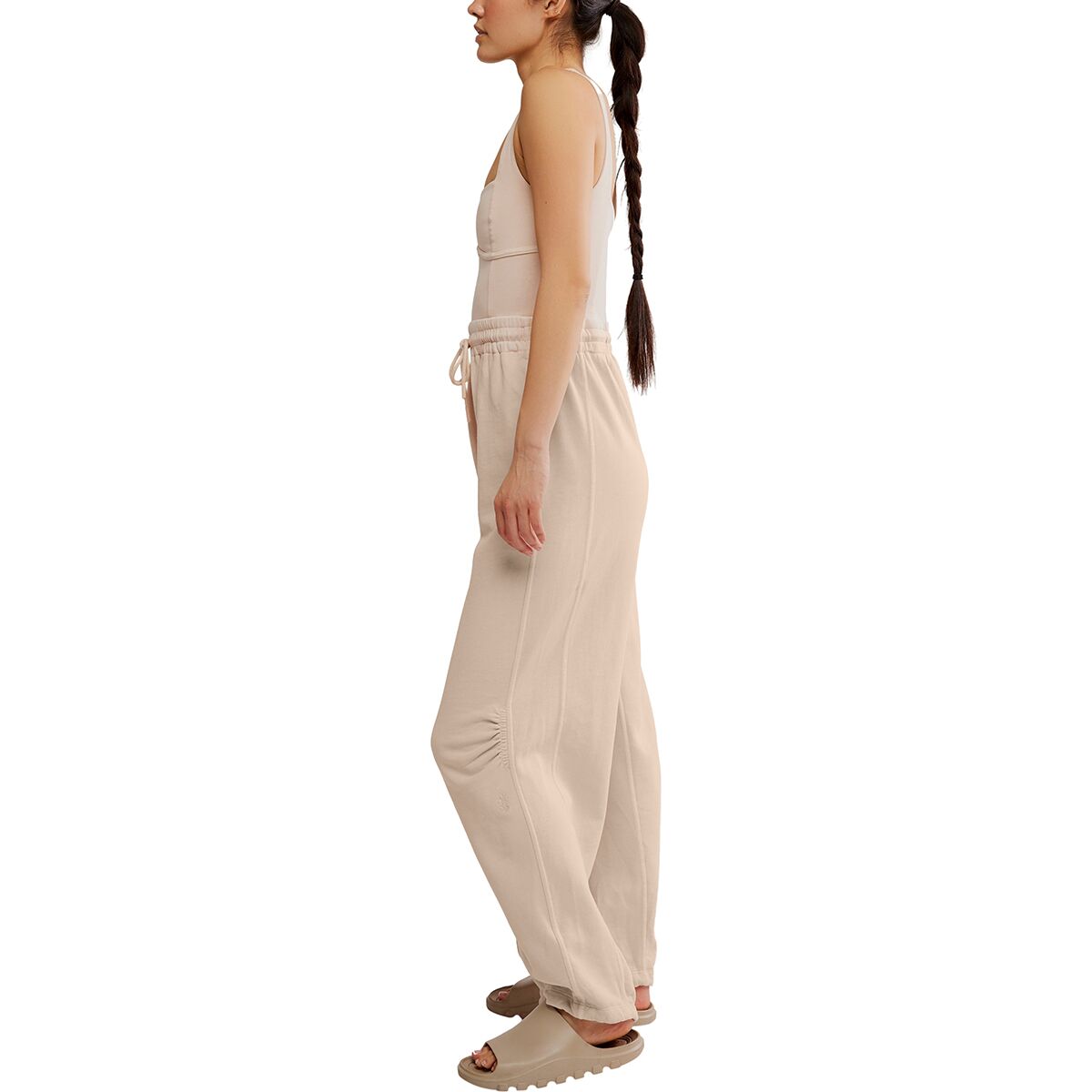 • Cozy, relaxed legs feature a sporty elastic waist and cuffs