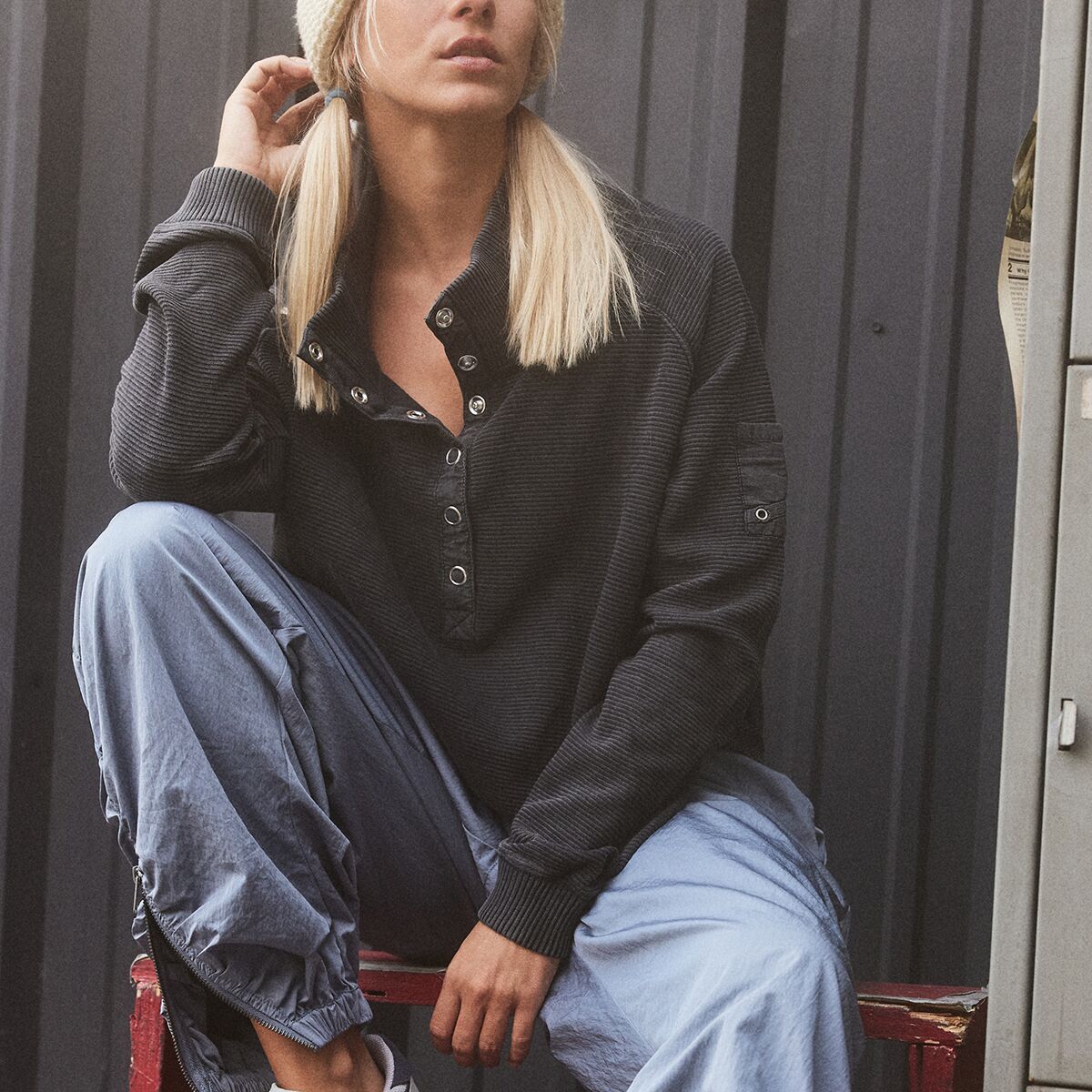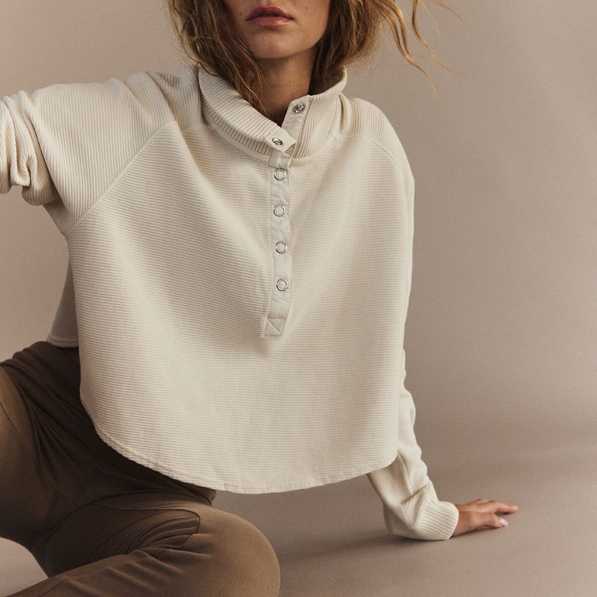 With a loose pleated design and relaxed silhouette, this henley top is perfect for layering or wearing on its own when we’re taking it easy. Whether we’re lounging at home, grabbing coffee with friends, or warming up after a hike, this cozy top effortlessly transitions from one moment to the next, making it a go-to favorite in our wardrobe.