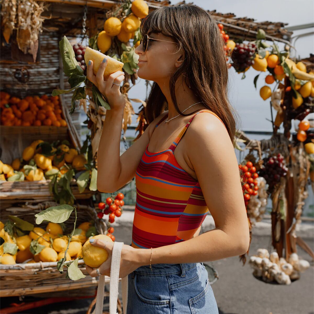 Comfort and confidence come to us in the Nani Swimwear Harbor One-Piece Swimsuit. This lively, striped one-piece is comprised of a recycled stretchy blend to keep us moving freely in an eco-friendly design, and even boasts a sun-protection rating of UPF 50+ to add defense against UV rays.