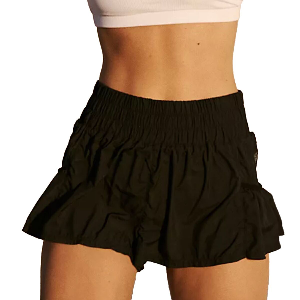 So flirty and fun shorts to spice up your workout attire, featured in a flowy style with a high-rise, smocked waistband and side pockets.
