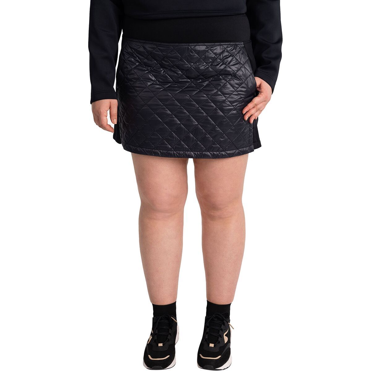 The Lole Apex Skirt brings stylish warmth to our winter wardrobe. This sporty high-rise skirt features durable and water-resistant construction to keep us dry, while the Ecodown vegan insulation provides superior warmth down to our mid-thigh.