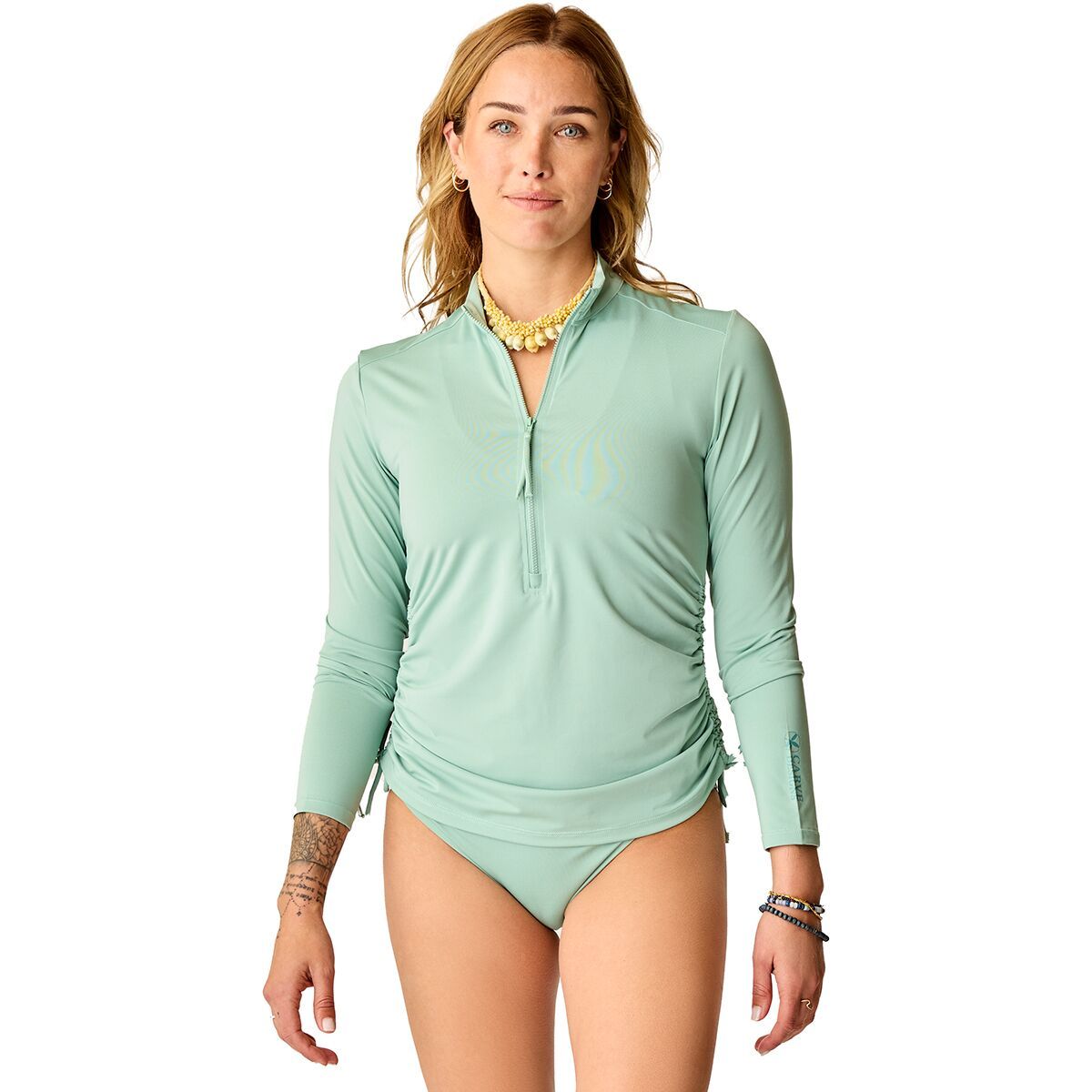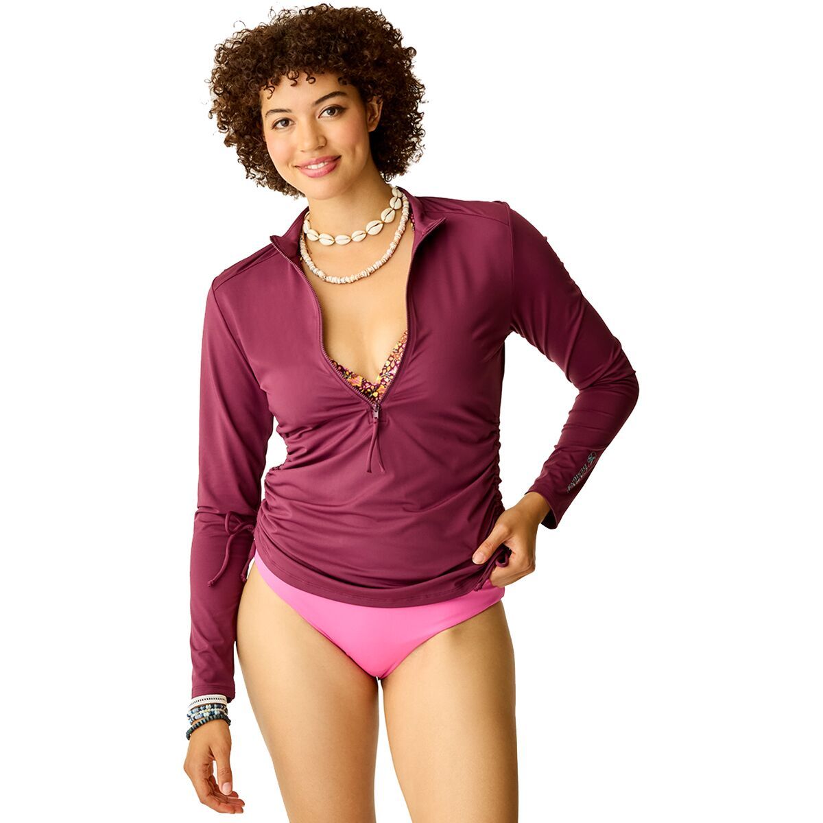 • A half-zip rashguard for surfing, bodyboarding, and SUPing