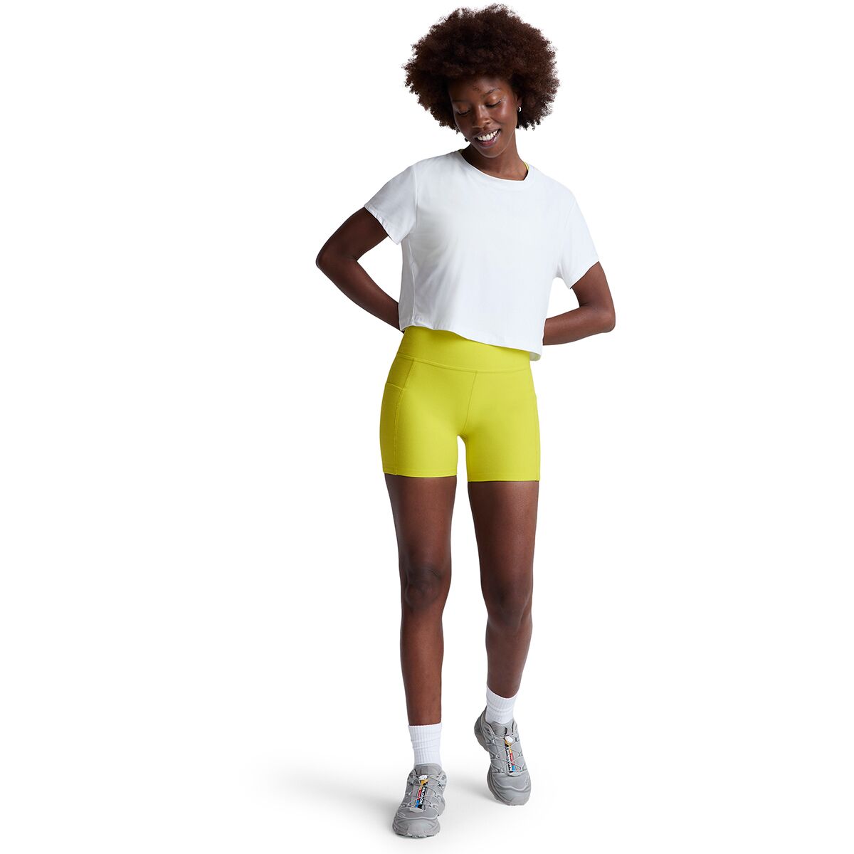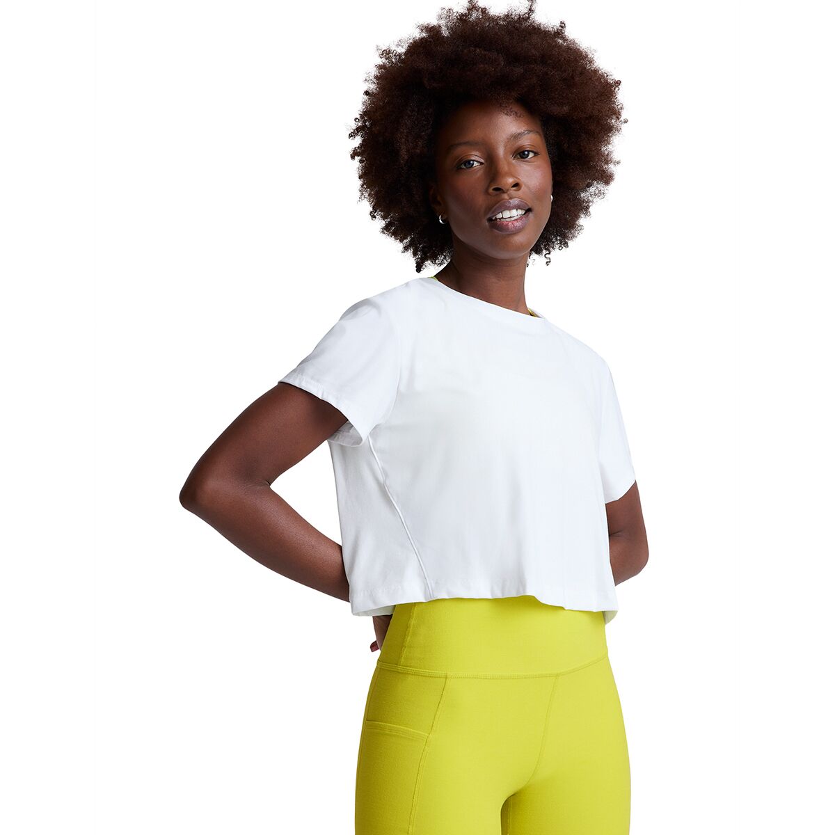 Its relaxed fit, scoop neckline, and cropped length create an easygoing yet flattering silhouette, perfect for layering over sports bras or pairing with high-waisted leggings. Whether you´re heading to the studio, running errands, or lounging at home, this tee delivers breathable performance and all-day comfort.