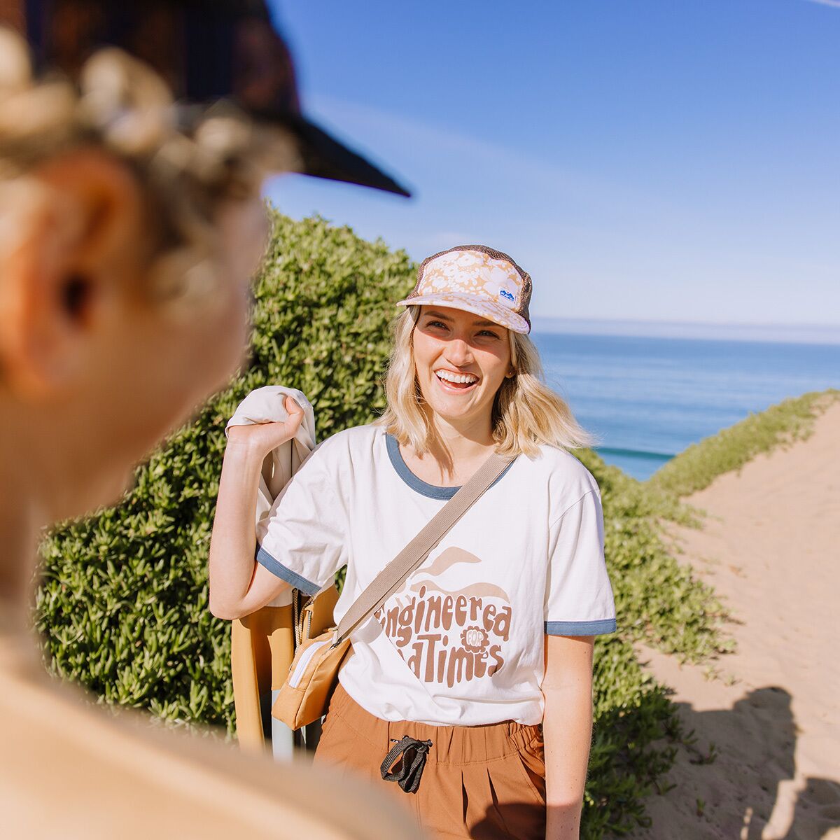 Crafted from 100% organic cotton, the lightweight jersey knit keeps us feeling fresh and comfortable, whether we’re road-tripping, hitting the farmers’ market, or just embracing easygoing weekends. With a relaxed fit and a bold center-front graphic, the High Spirits Top is our go-to for laid-back adventures with a touch of nostalgia.