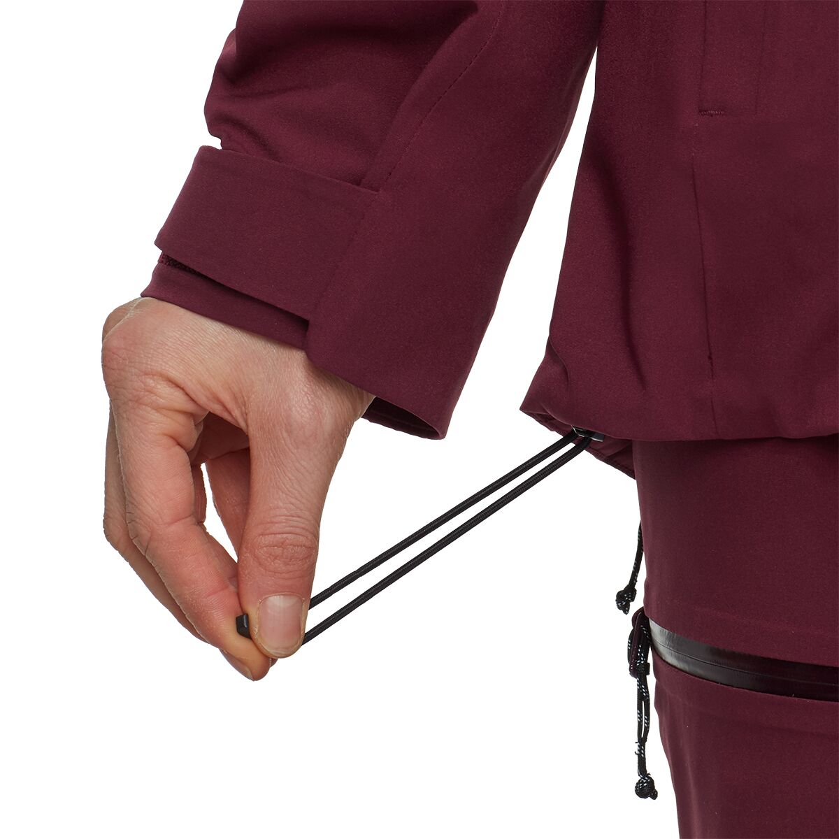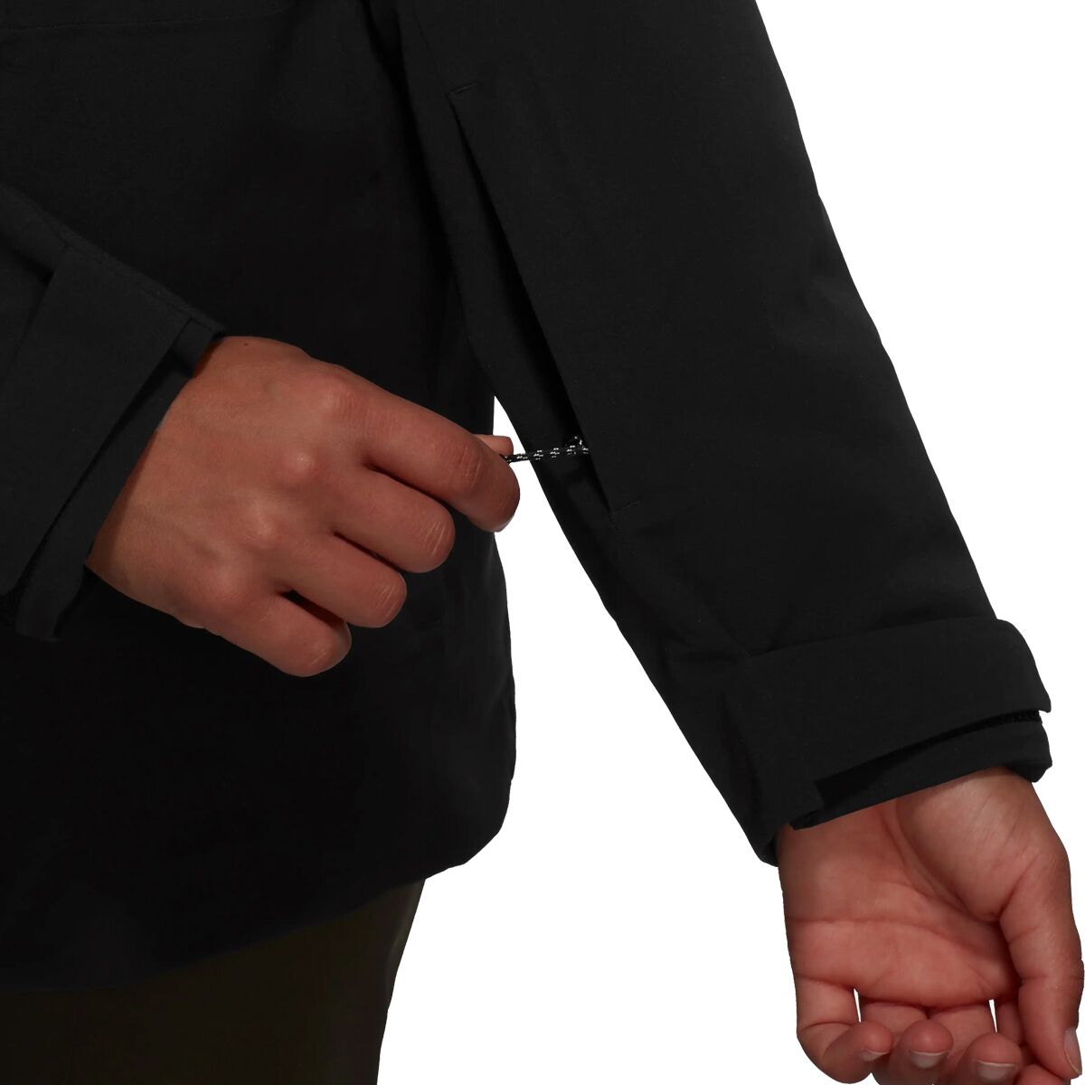 - Adjustable hood seals out snow and is removable for style variation