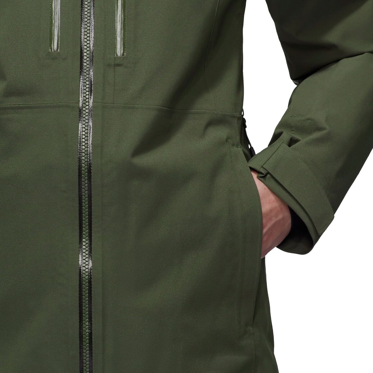 - Zippered underarm vents provide airflow while hiking