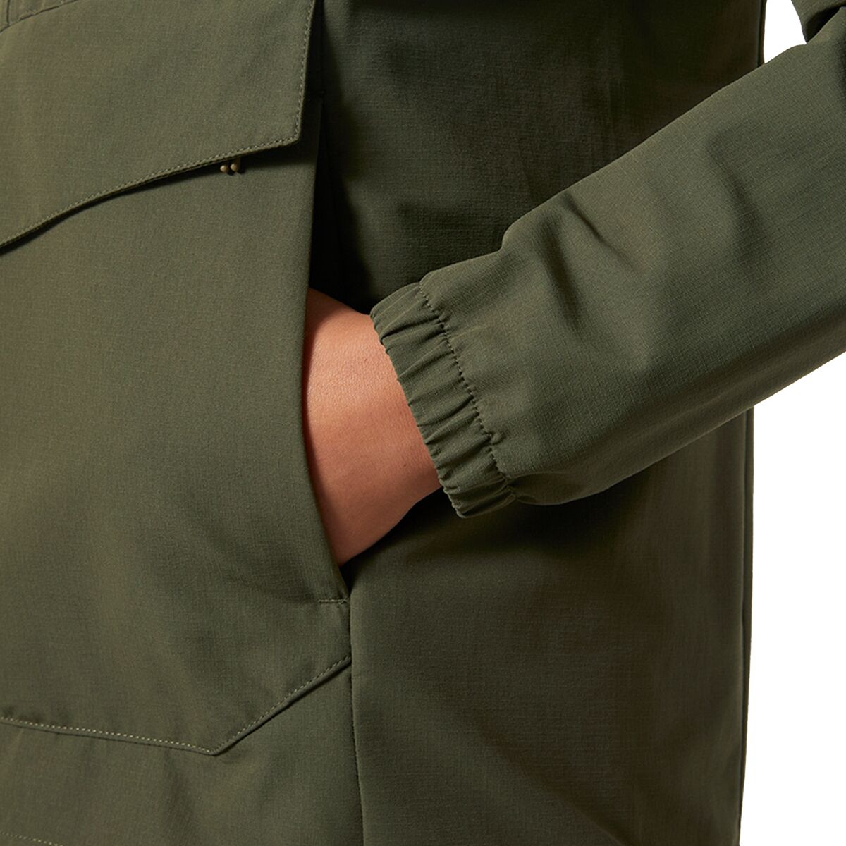 • Adjustable hood and hem lock in added coverage and comfort