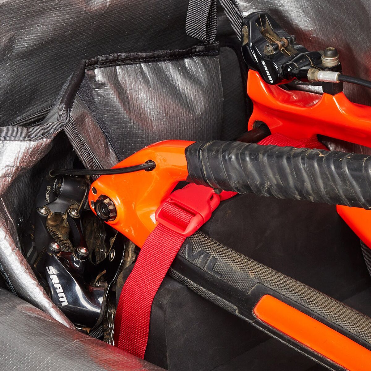 - 360-degree padding, 5 internal padded sleeves for wheels, fork, handlebar, and derailleur