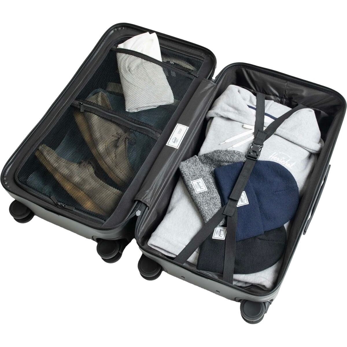 The Herschel Supply Co Heritage Hardshell Medium Luggage takes the stress out of travel, ensuring our cargo arrives safe and sound everywhere we go. The 67-liter capacity is split between the two sides of the bag, with one side with mesh storage sleeves to keep us organized on the go. The suitcase is protected by a polycarbonate shell with reinforced corners that protect against bumps. Our luggage quietly rolls along airport floors and hotel lobbies on the durable Hinomoto wheels, and the retractable multi-stage trolley handle easily guides our valuables to our destination.