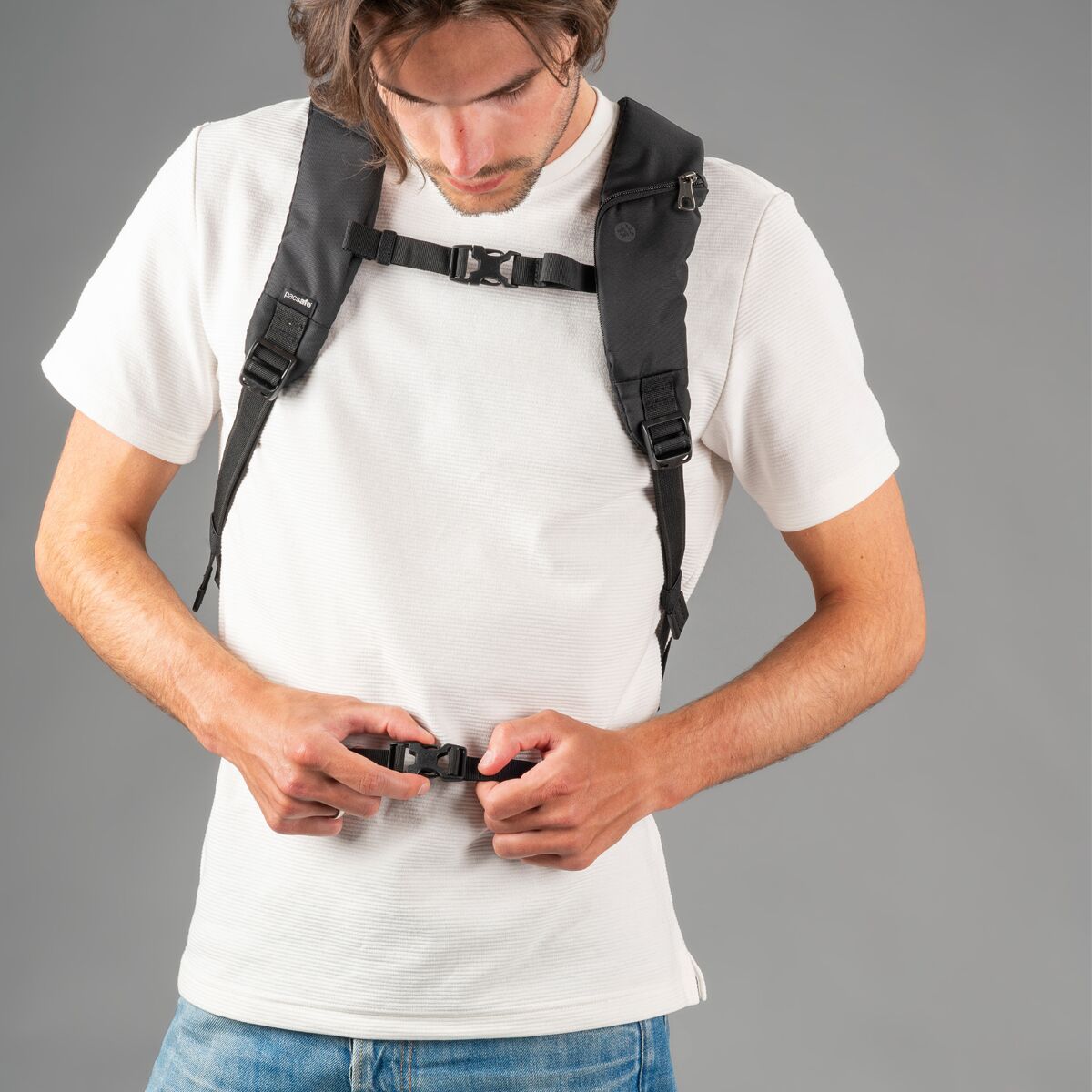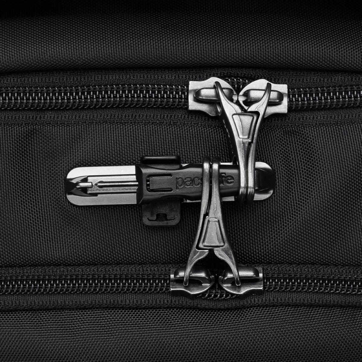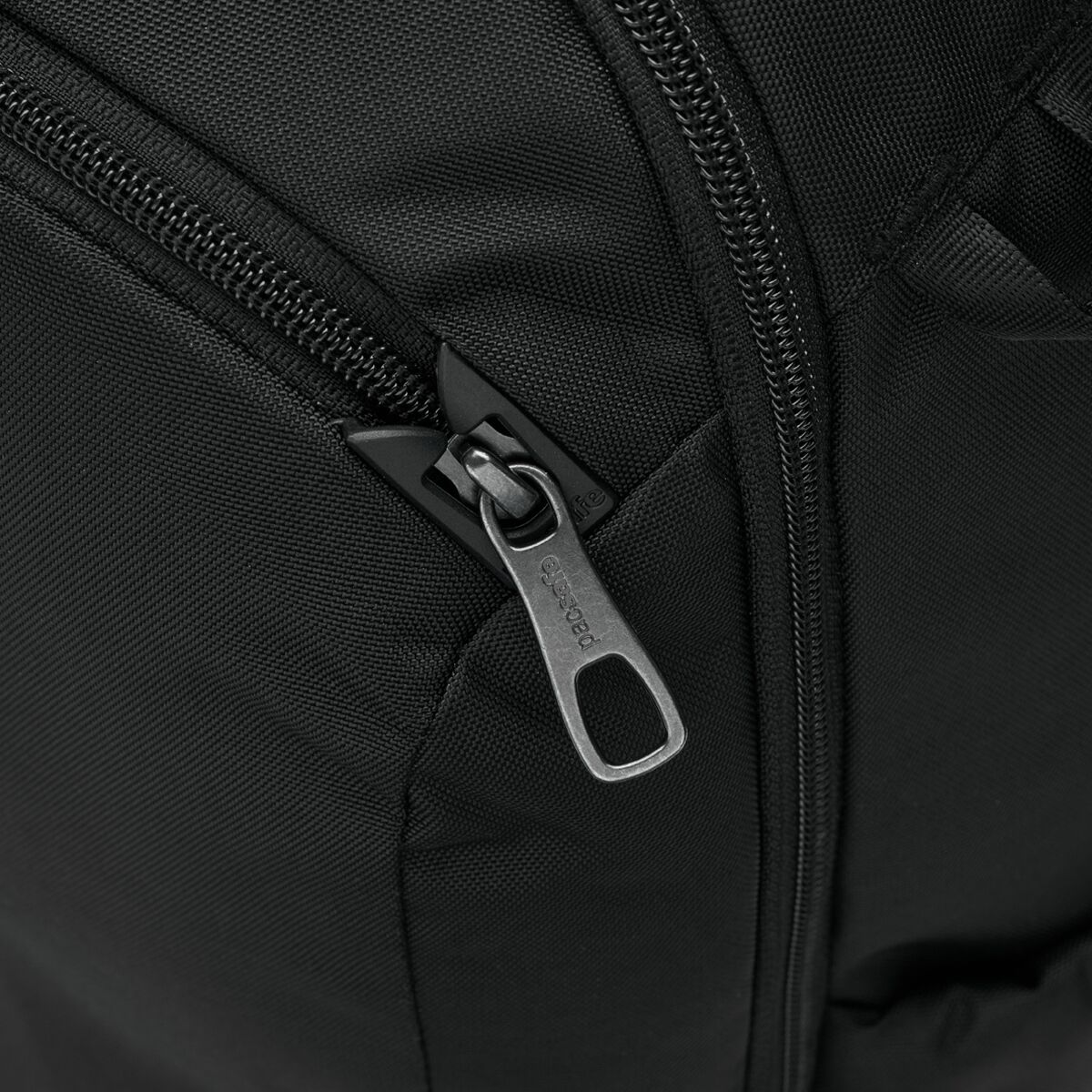 • eXomesh® slashguard and Roobar™ locking system protect valuables