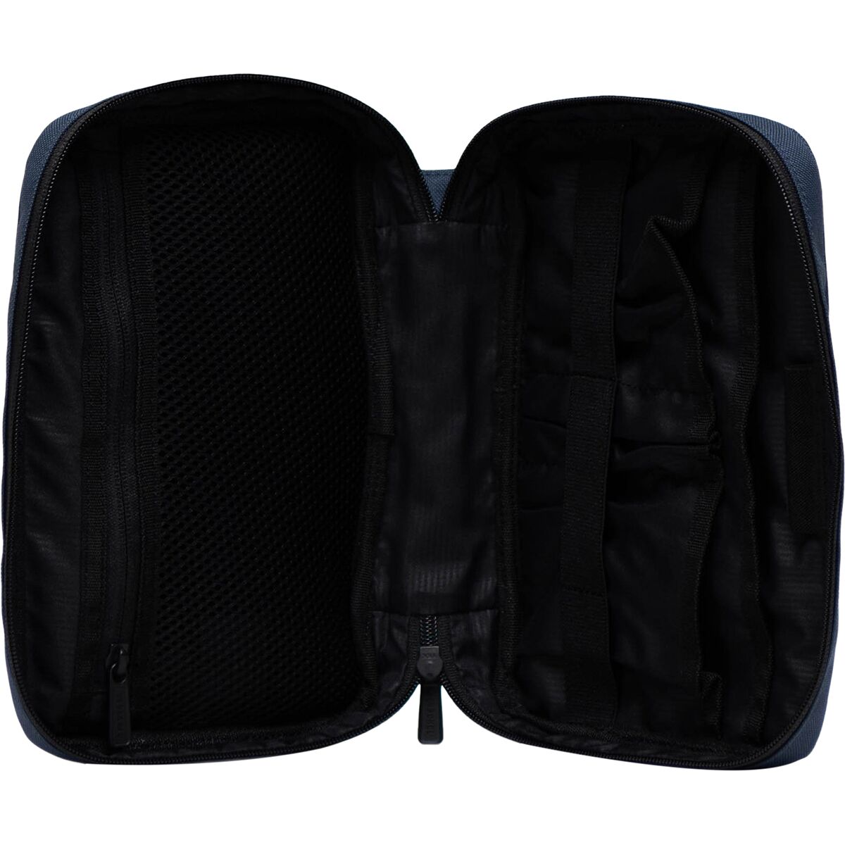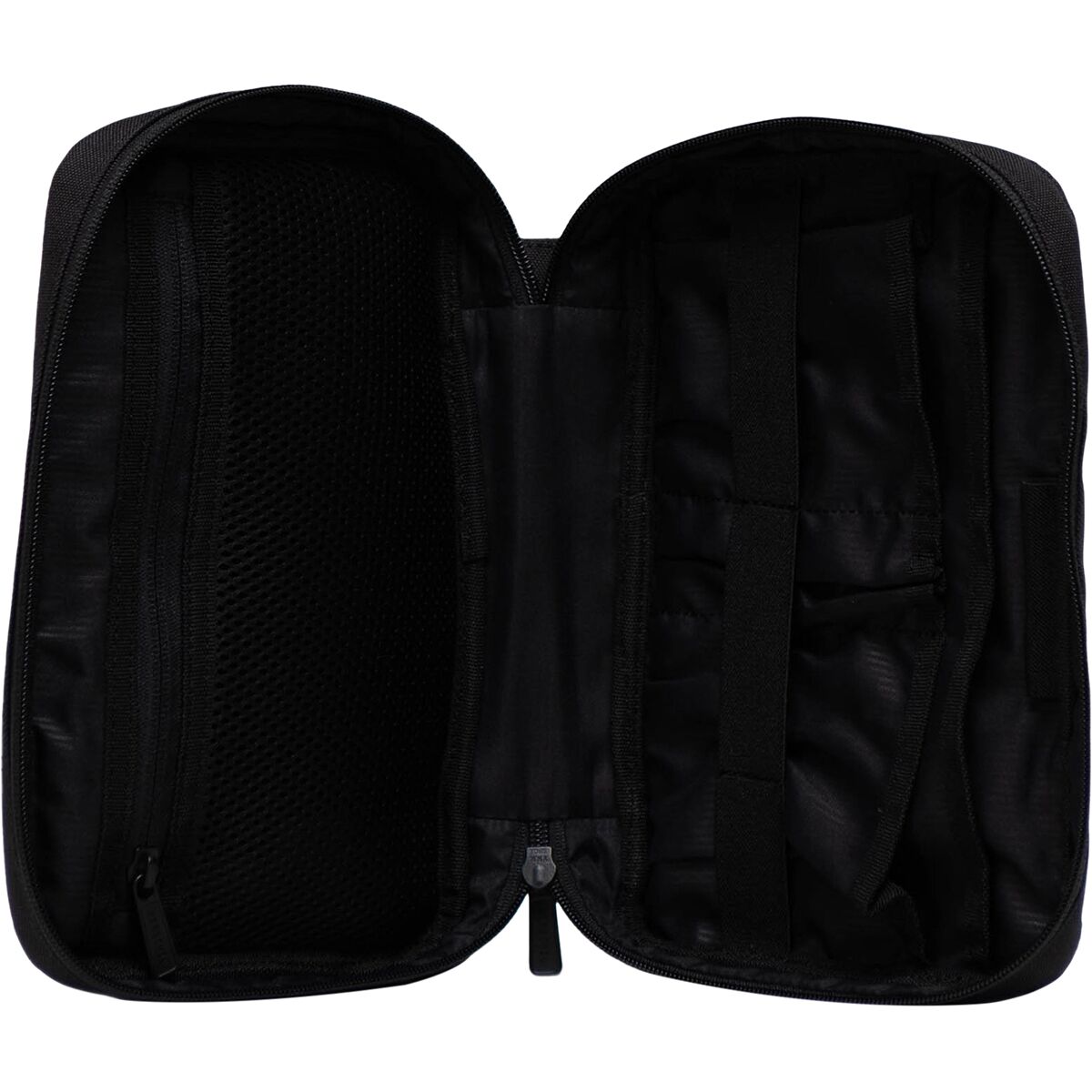 [external] 1 zippered front, [internal] 1 pen sleeve, 1 zippered mesh, elastic cable straps, multiple drop-in