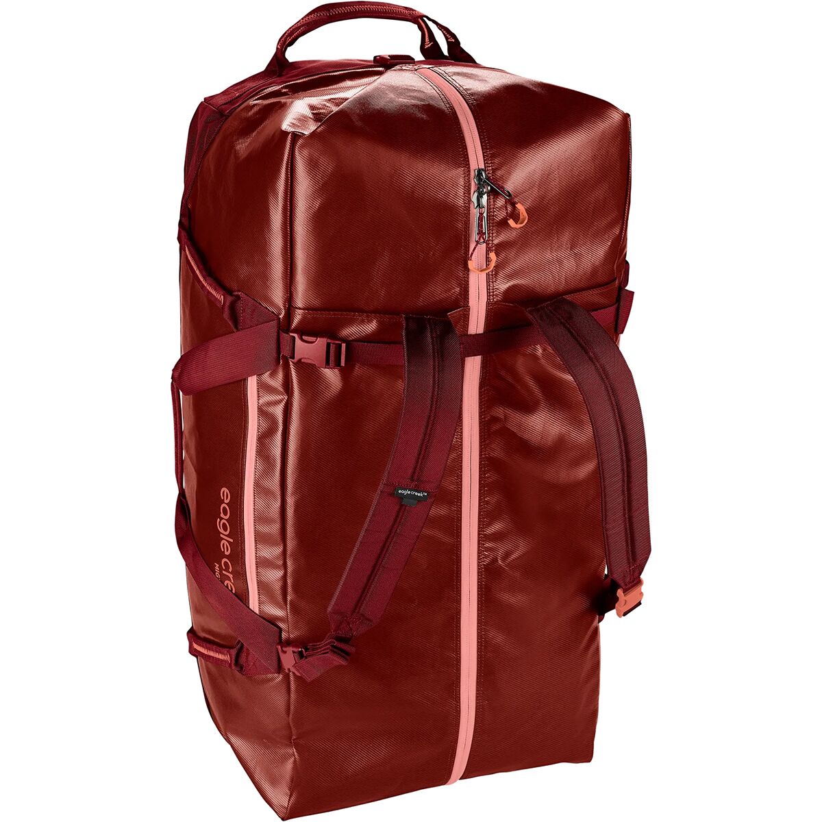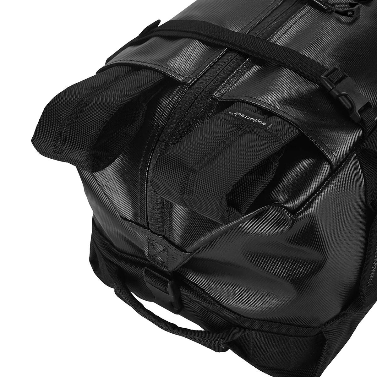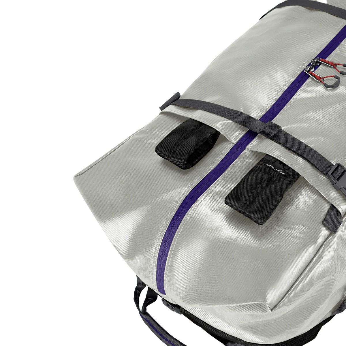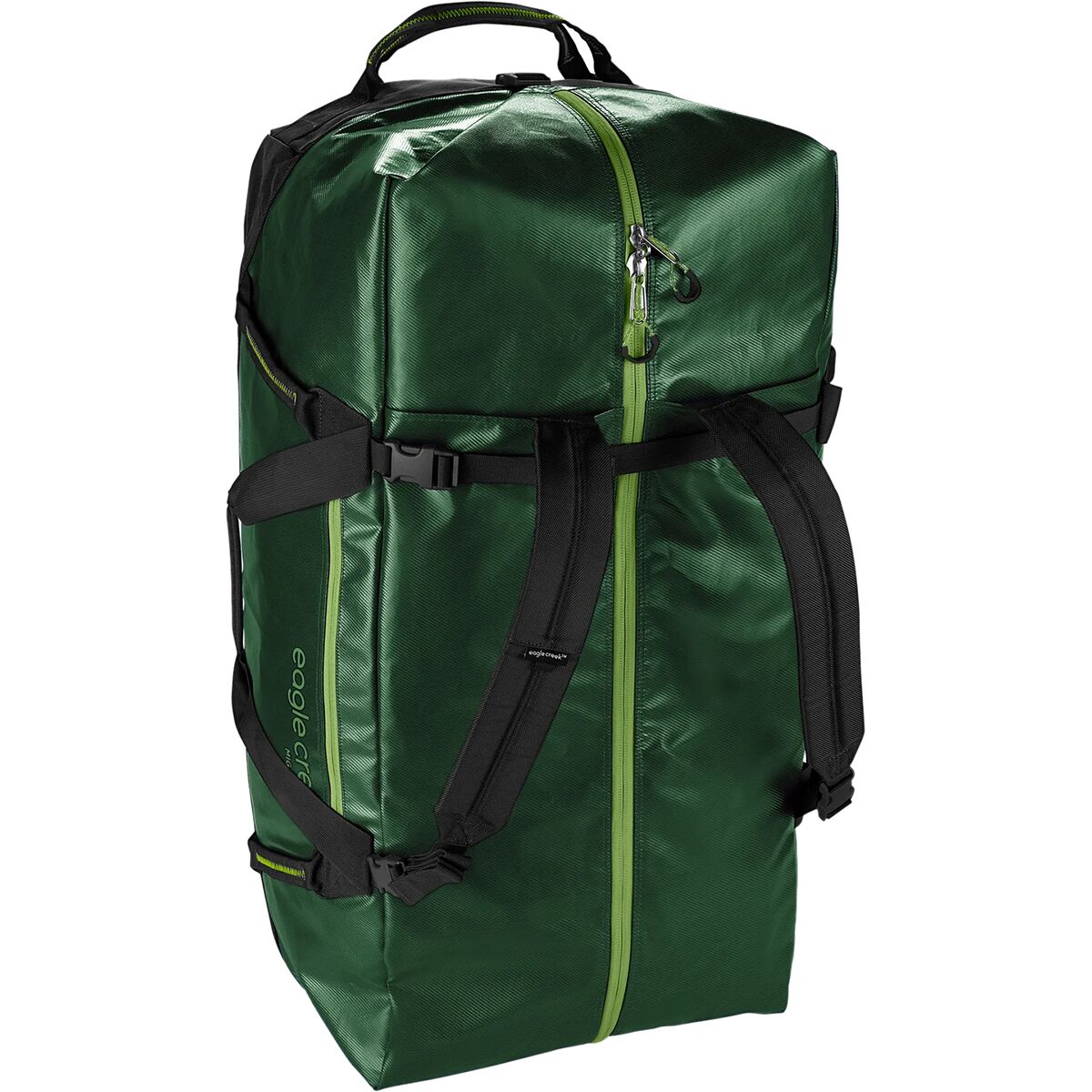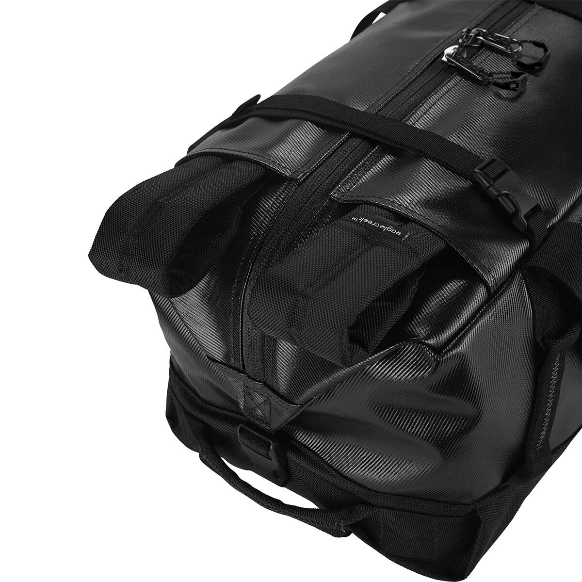 - Duffel carry or backpack carry with tuck-away backpack straps