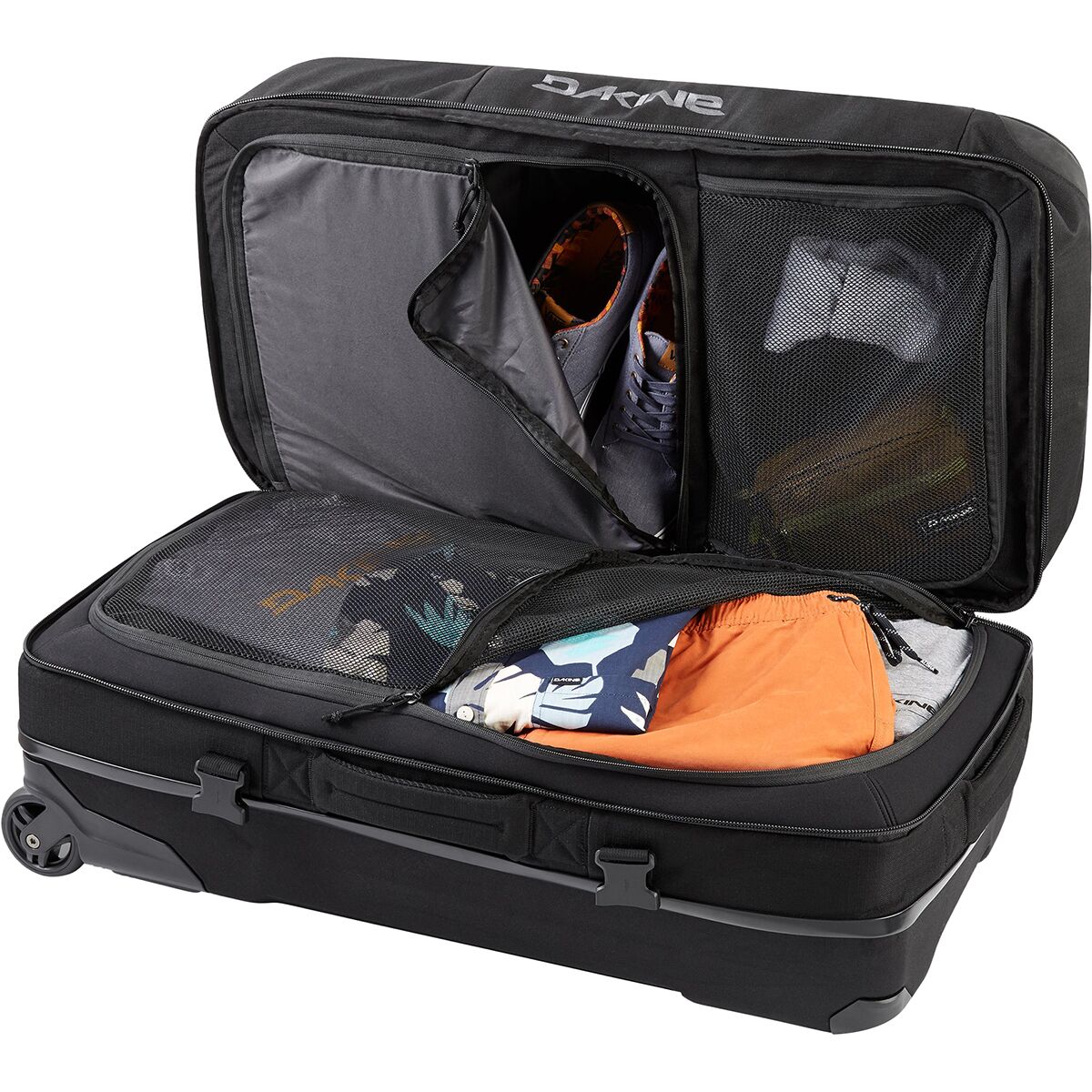 Built for durability, this travel-ready bag boasts reinforced corners, oversized urethane wheels, and bomber YKK® zippers that withstand years of travel. A neoprene panel provides extra stretch for overpacking, and dedicated compartments separate dirty clothes or bulky gear from the rest of your essentials. Whether you´re chasing snow, surf, or cityscapes, this bag is ready to roll with you.