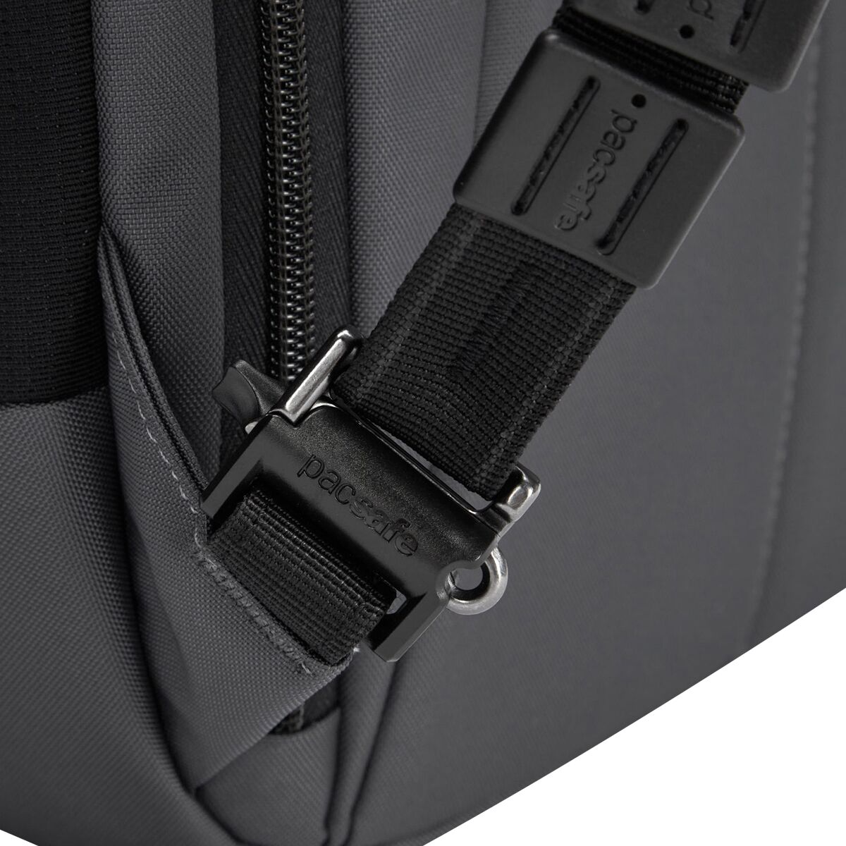 • Security clip on padded shoulder strap locks your bag to chairs
