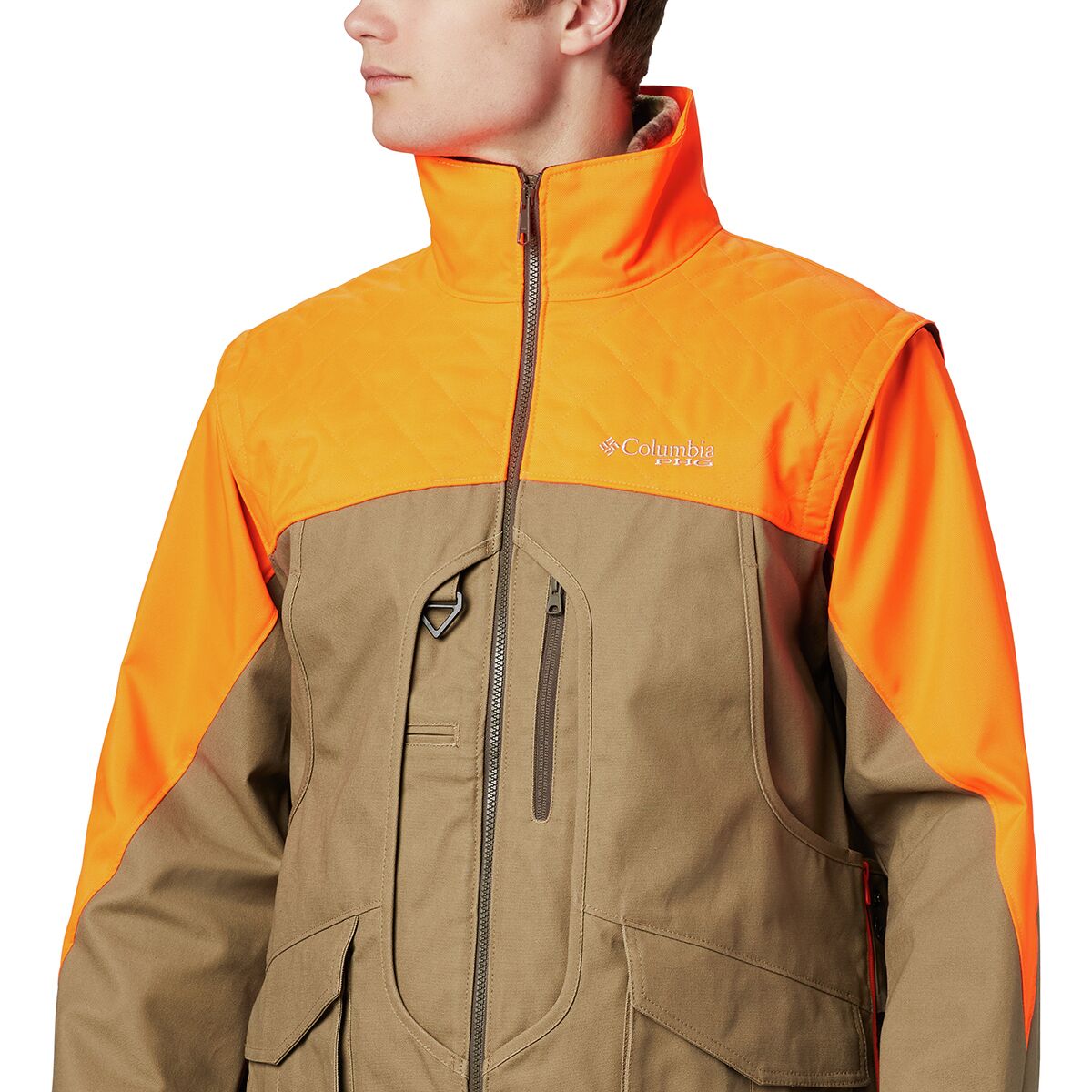 Columbia´s durable and versatile Ptarmigan Interchange Parka prepares us for the upland´s cold, snowy, and rainy conditions. Duck canvas is rugged enough for bushwhacking, and the zip-in fleece vest offers warmth when the temperatures dip. In addition to the two layers zipping together, we can zip the sleeves off the outer shell for targeted coverage and freedom of movement.