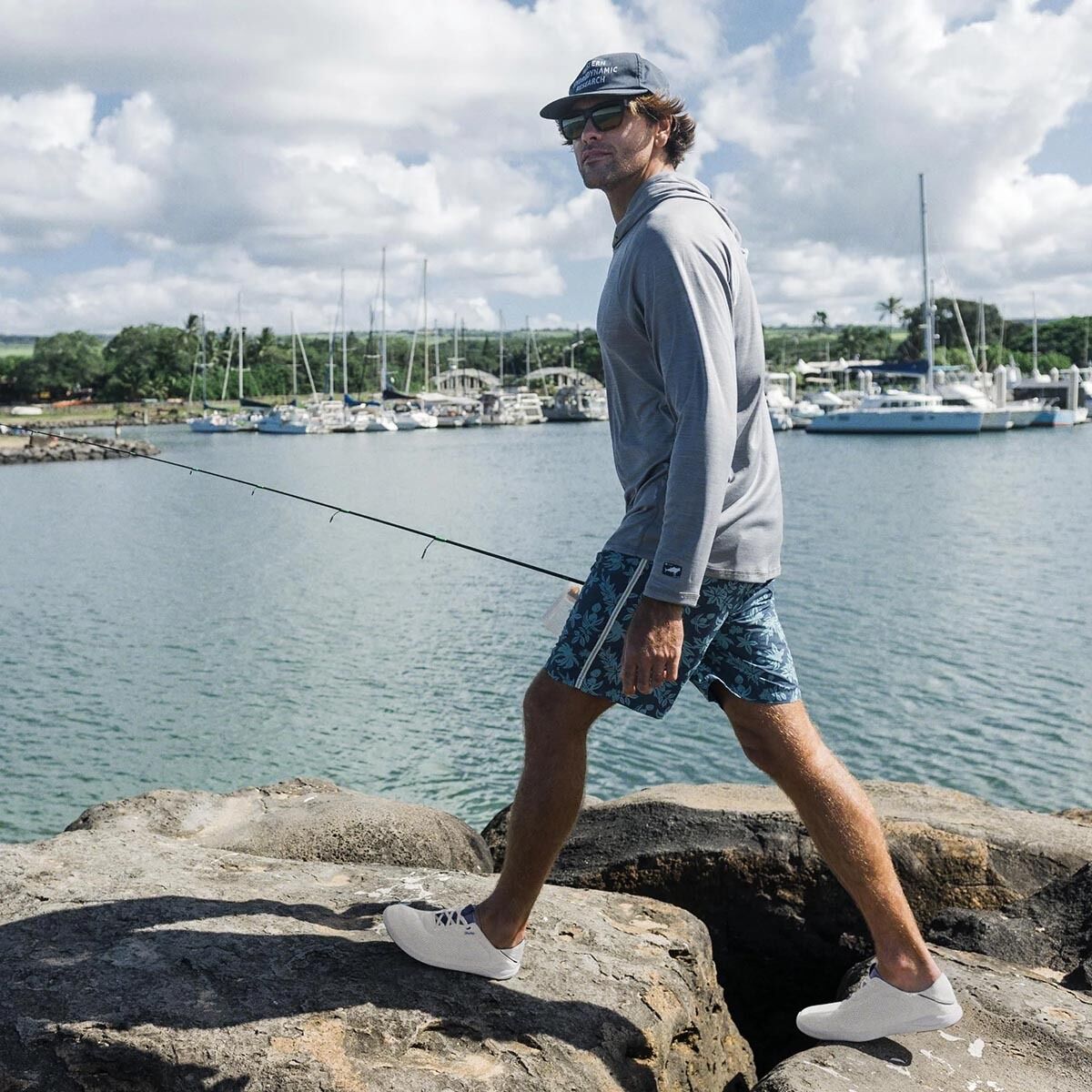 OluKai updated the boat shoe with their Moku Pae Shoe. With a more sneaker-like style and a clever Drop-In Heel for slip-on convenience, these shore-and-sea shoes offer flair that´s just as comfortable in the water as on the boardwalk. Quick-drying, breathable mesh keeps our feet cool in the summer heat and dry by the water.