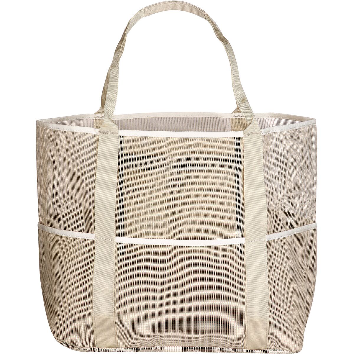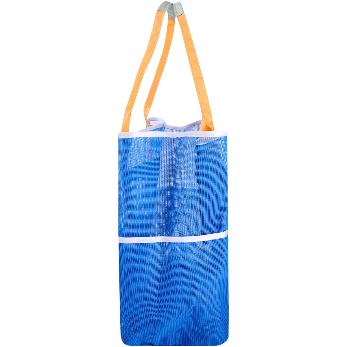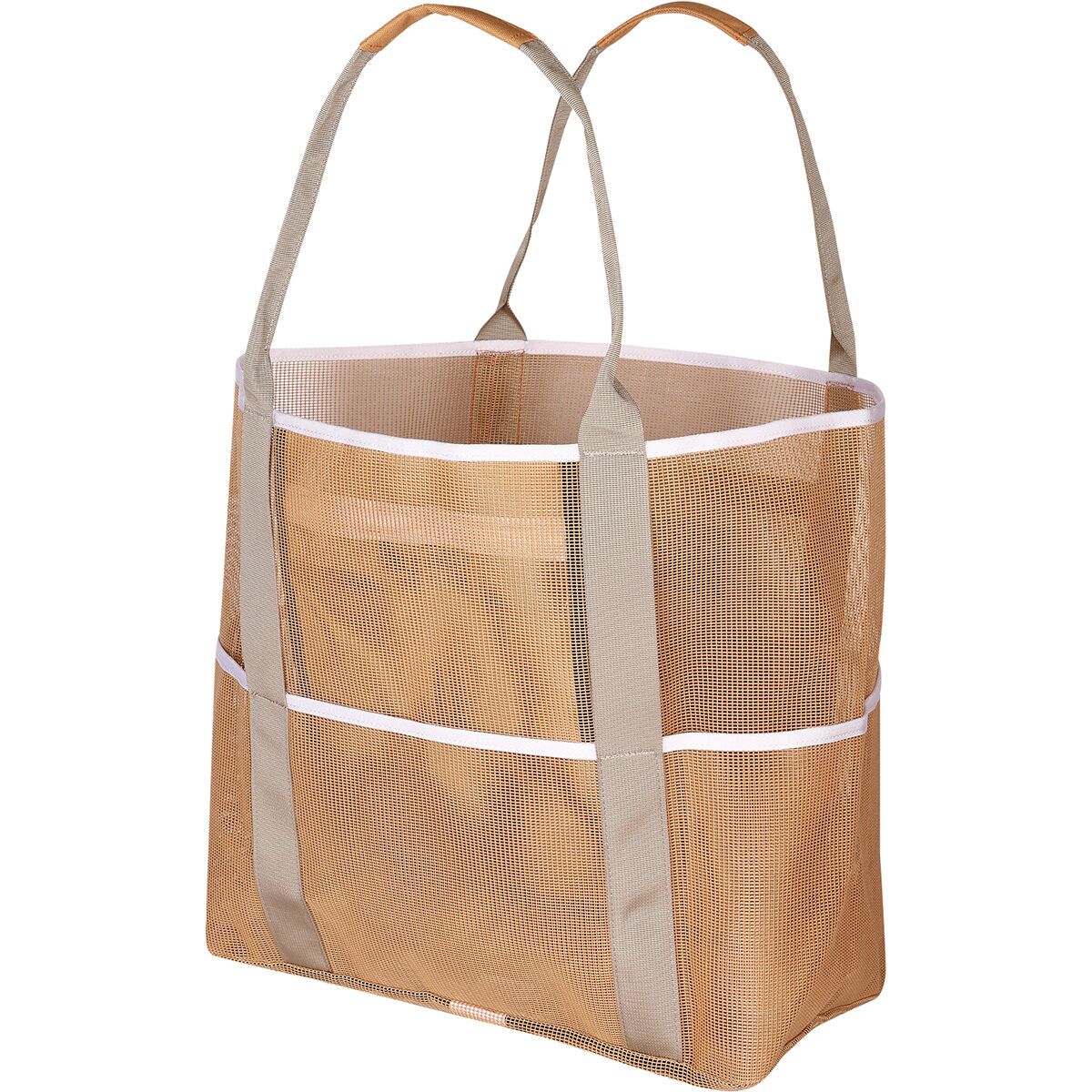 - Polyester mesh lets sand sift through to prevent sandy messes