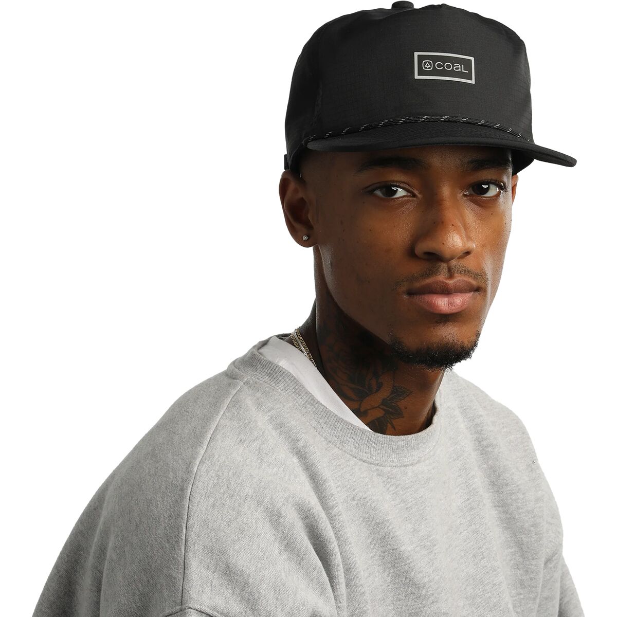 • Above-brim cord strap touches up its look