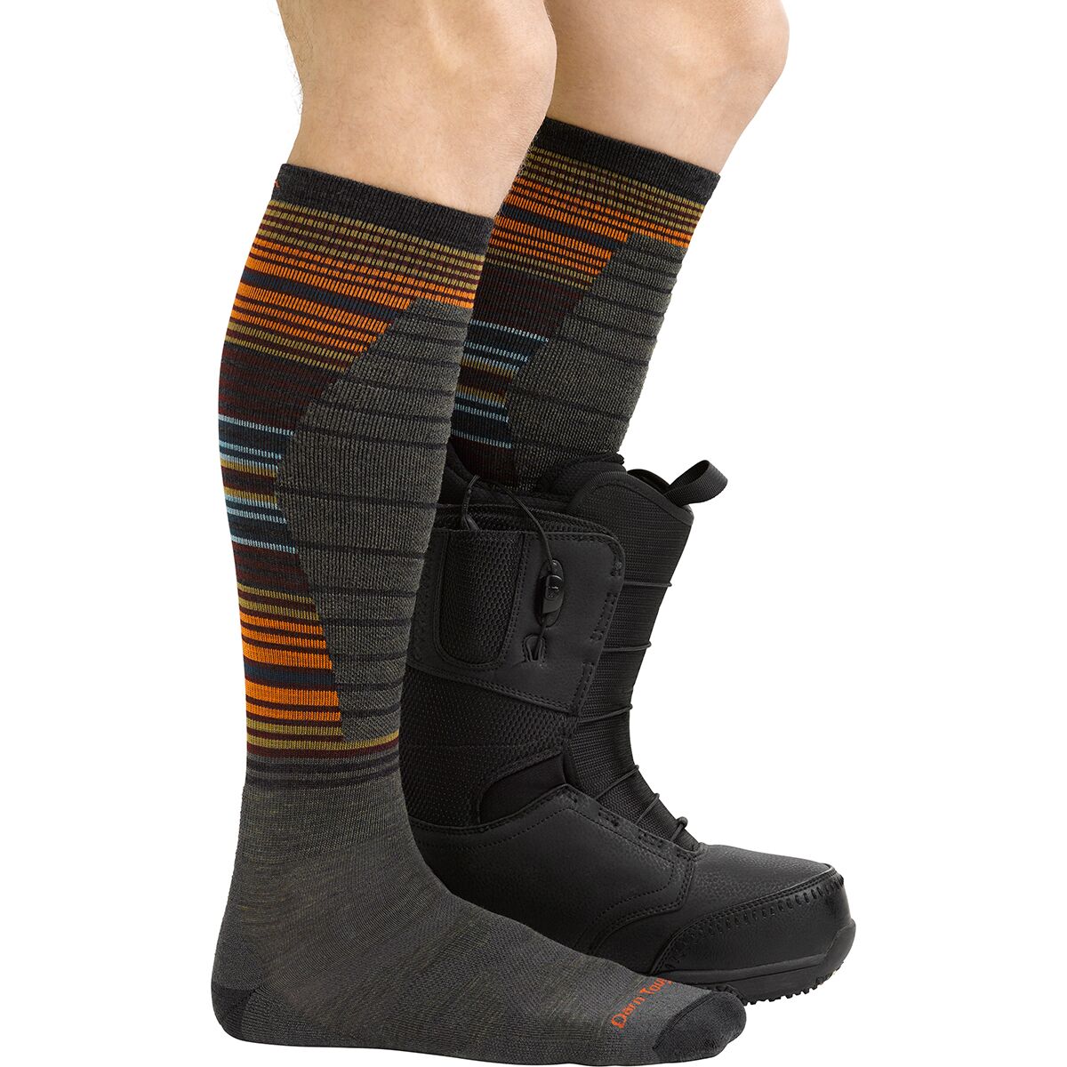 With inspiration and feedback from a Vermont-based snowboarding legend, Darn Tough brings us the Backwoods OTC Lightweight Cushion Padded Shin Sock for lasting comfort through daylong shred sessions. With padding underfoot and along the shin, this pair mutes vibrations and prevents boot bang, while the soft woolly blend manages moisture and holds strong through a 100-day season.