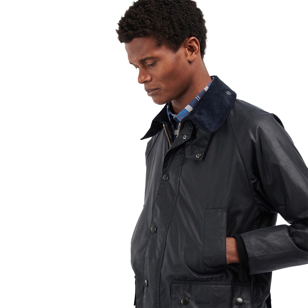 [body] waxed cotton, [collar] cotton corduroy, [lining] cotton tartan