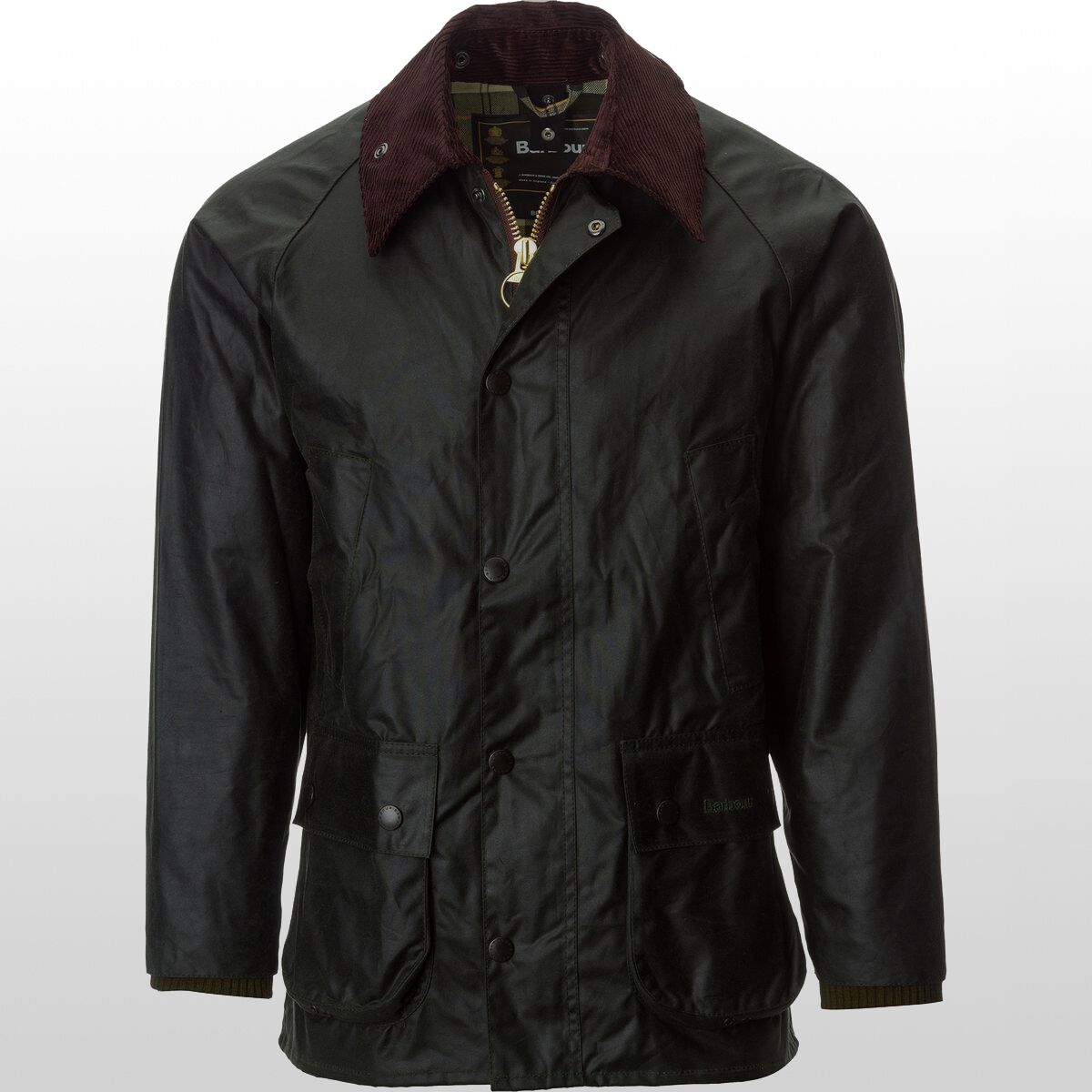 Originally created in 1980 for equestrian pursuits, the Barbour Bedale Wax Jacket exudes classic British sensibilities with its waxed cotton exterior, ring-pull zipper, and Stormfly front closure. Its shorter length, tailored fit, and rear vents reflect its equestrian heritage, with a six-ounce waxed cotton exterior for protection in damp maritime environments. The corduroy collar provides smooth-wearing sophistication, with external snaps for attaching an optional hood.
