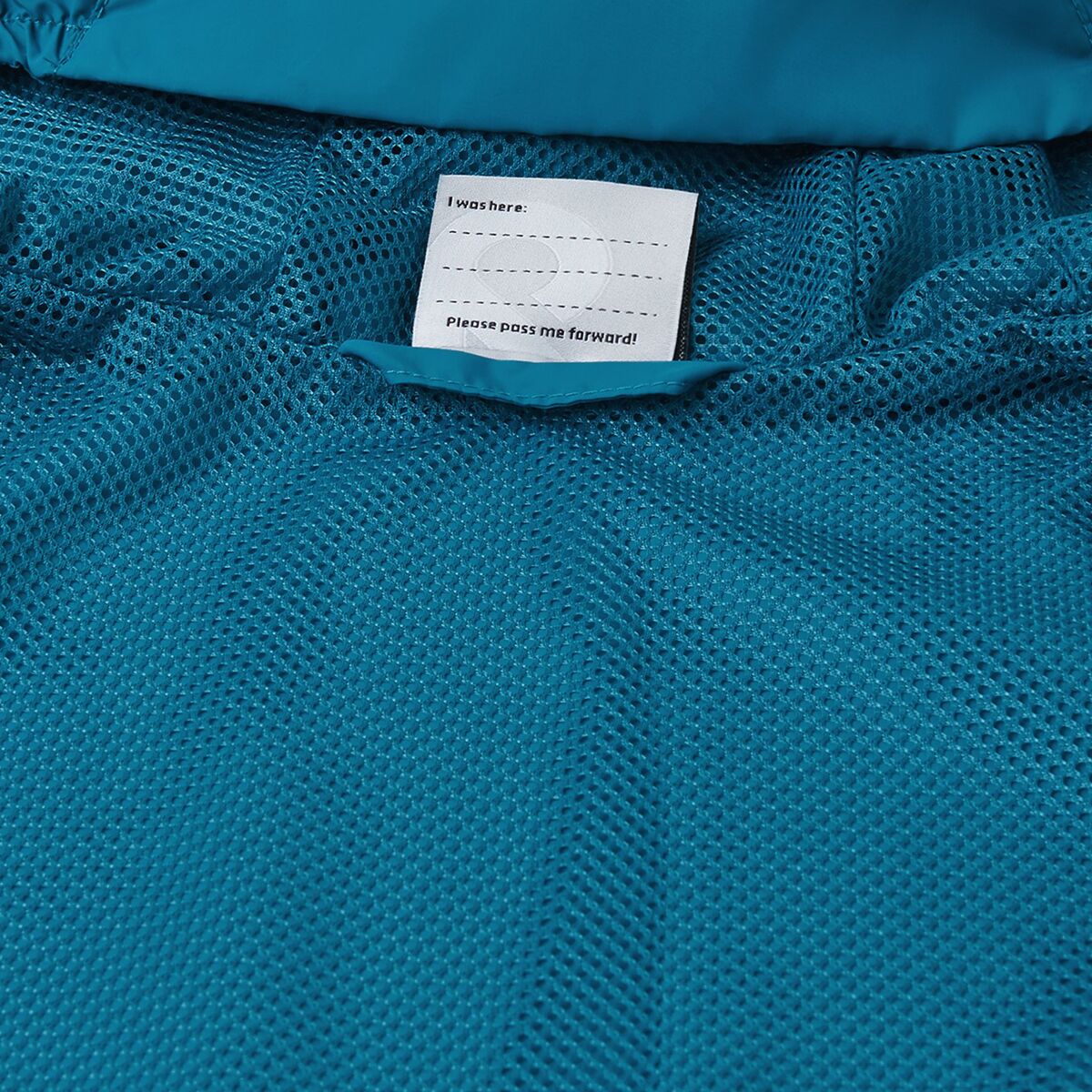 A fixed hood and high chin guard add extra protection on breezy days, and the fluorocarbon-free water- and dirt-repellent finish makes it easy to keep clean. With front pockets for stashing small treasures and an elasticized hem and cuffs for a secure fit, this jacket is a reliable go-to for outdoor fun.