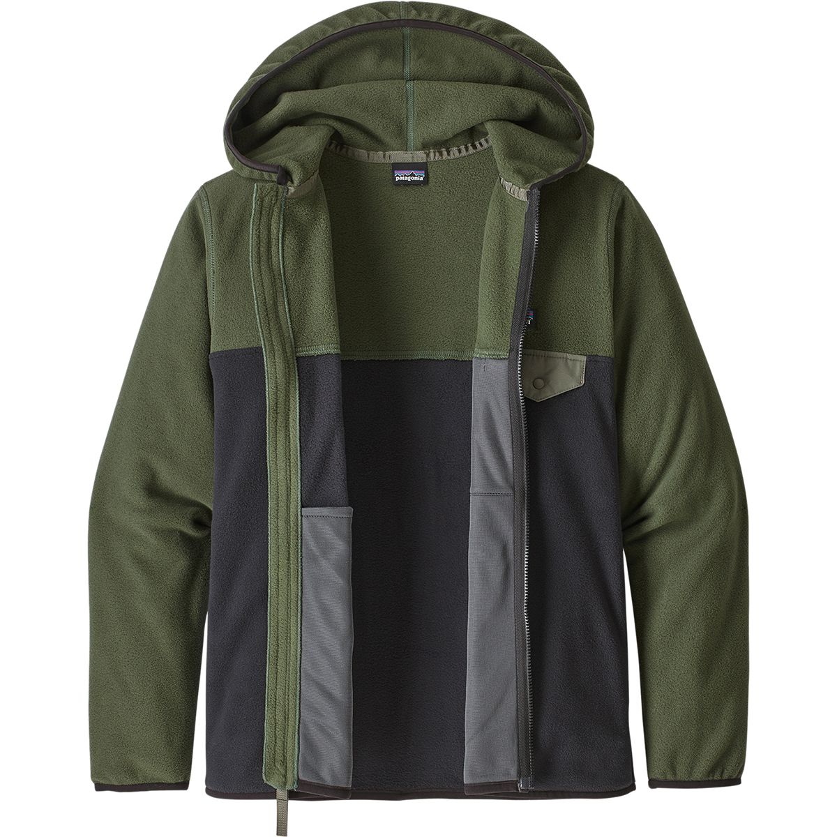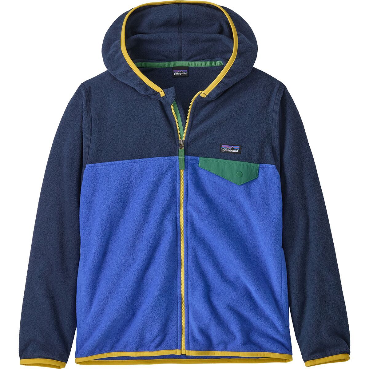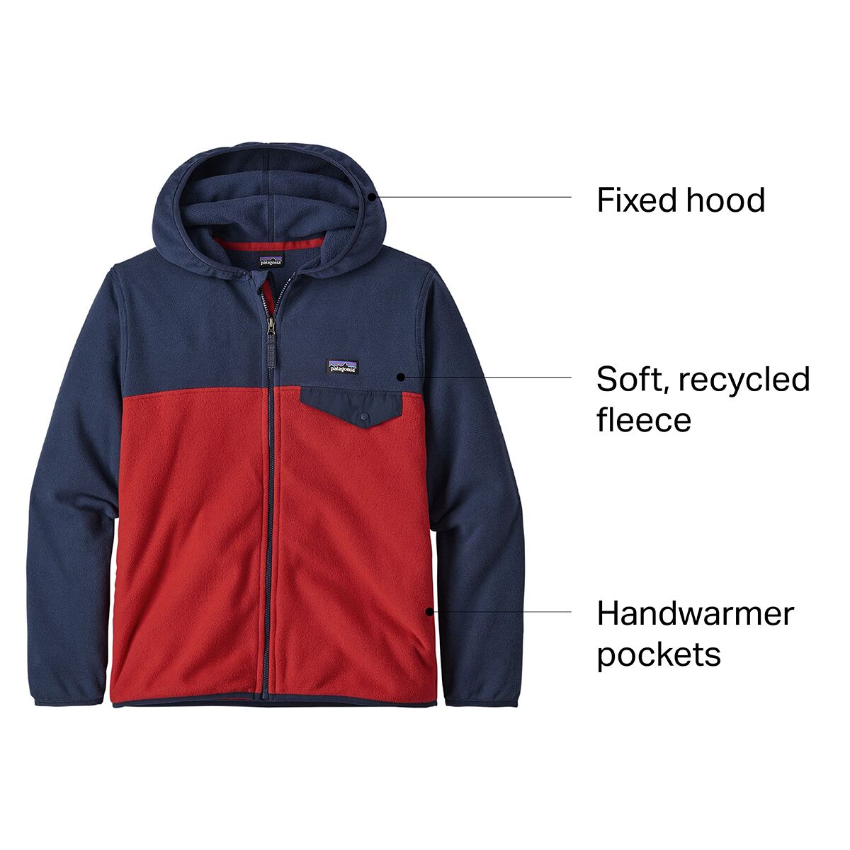 Keep your little guy cozy on chilly fall days of leaf-pile diving sessions in the Patagonia Micro D Snap-T Jacket. Made with a super soft and lightweight microfleece, this jacket offers unbelievable comfort and easy-layering warmth that´ll keep them warm in the outdoors when temperatures start to dip. A snug-fitting hood with spandex binding helps to keep them protected from the wind and cold, while the same binding at the sleeves and hem keeps their warmth sealed in. The full-length zipper makes it easy to throw on layers underneath the jacket when it´s colder than expected, and two handwarmer pockets give them a cozy stash to stash their freezing fingers.